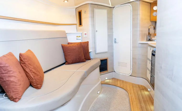 A performance-oriented boat that also gives you great cabin space and the ability to spend weekends in comfort. Cummins Onan 6kw Diesel generator, 12,000 BTU AC, Microwave, cooktop, refrigerator.