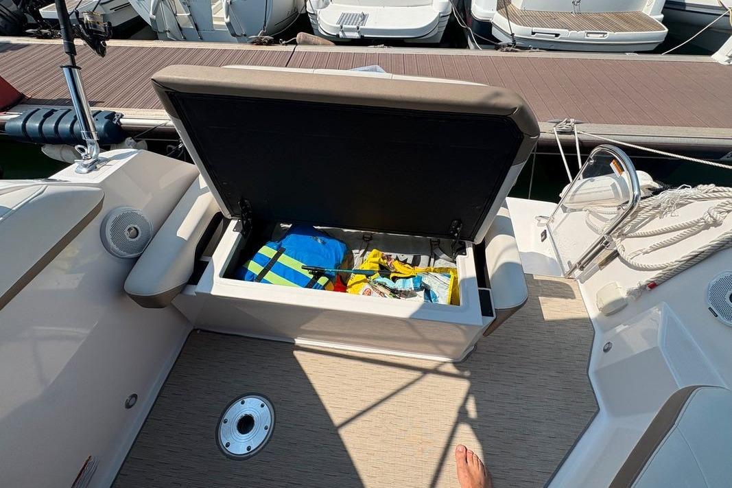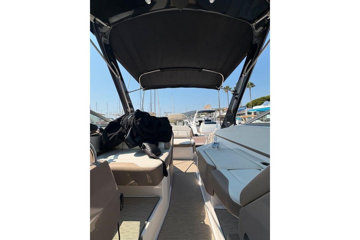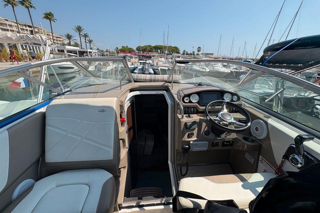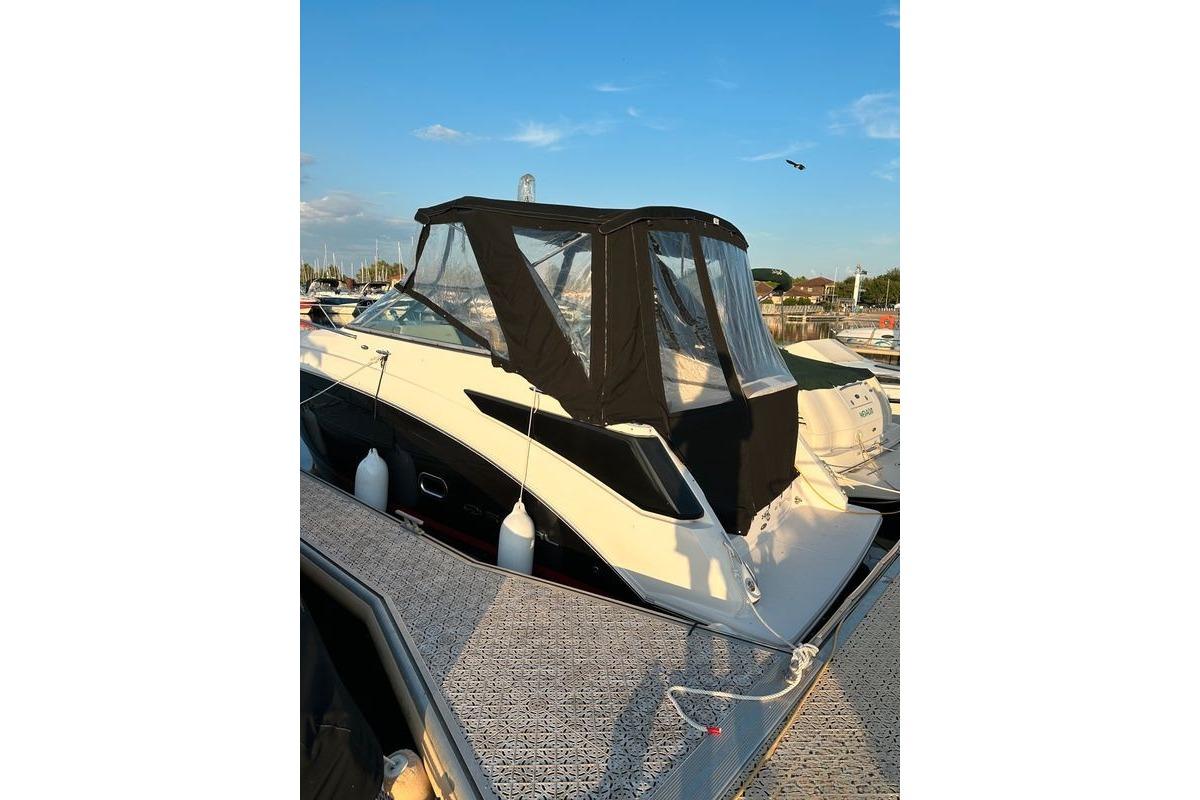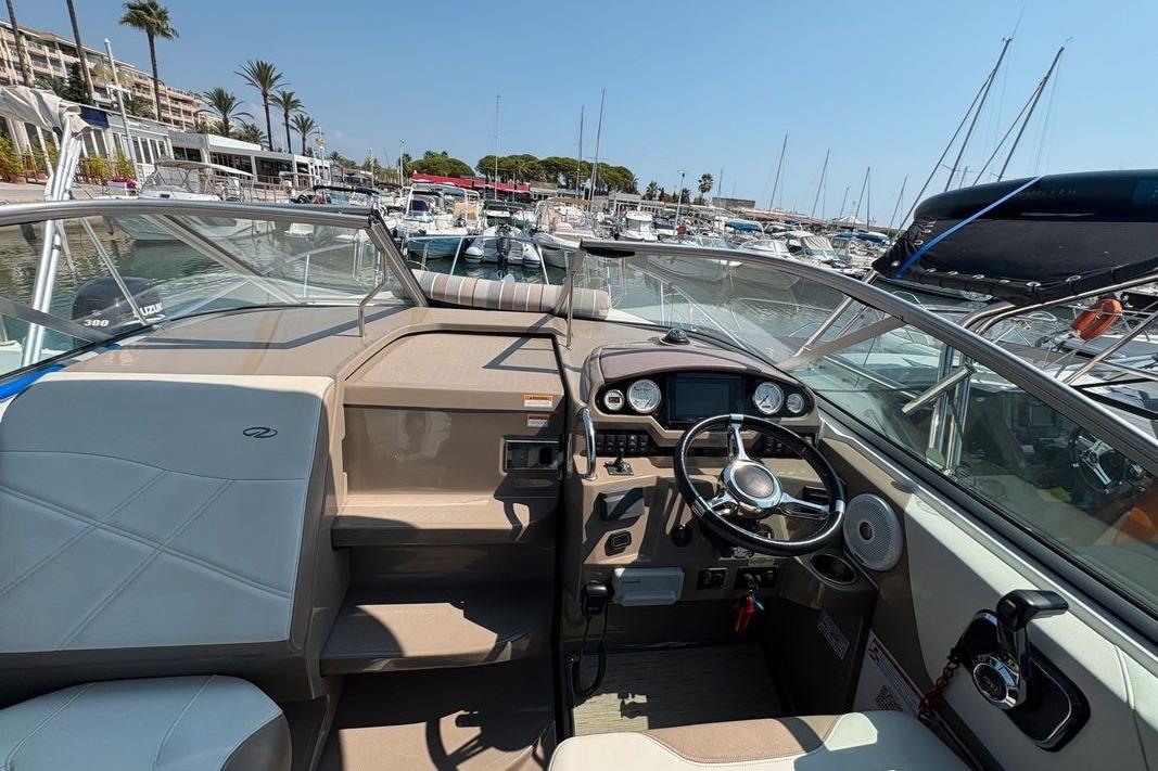 Compact, stylish and easy to handle, the Regal 26 Express blends a quick, efficient hull with big-boat comforts. Dockside control is confidence-inspiring thanks to the bow thruster, electric windlass and trim tabs, while the electric arch and full canvas (camping, bimini, winter) adapt the cockpit for sun, shade or shoulder seasons. The swim platform with ladder and shower makes water days effortless.