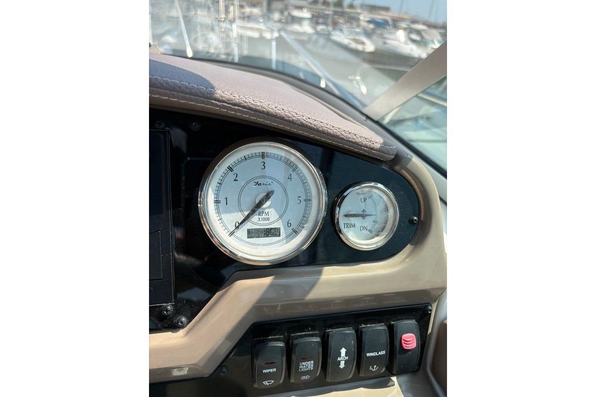 GPS/chartplotter/depth sounder · VHF · analog gauges + multifunction display · bow thruster · electric windlass · electric trim tabs · battery charger