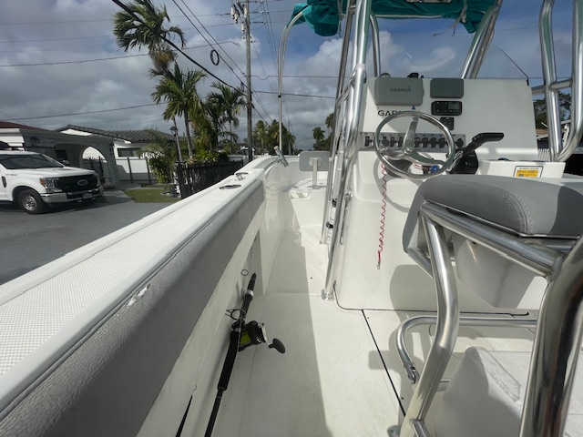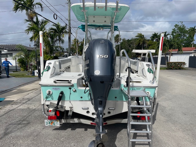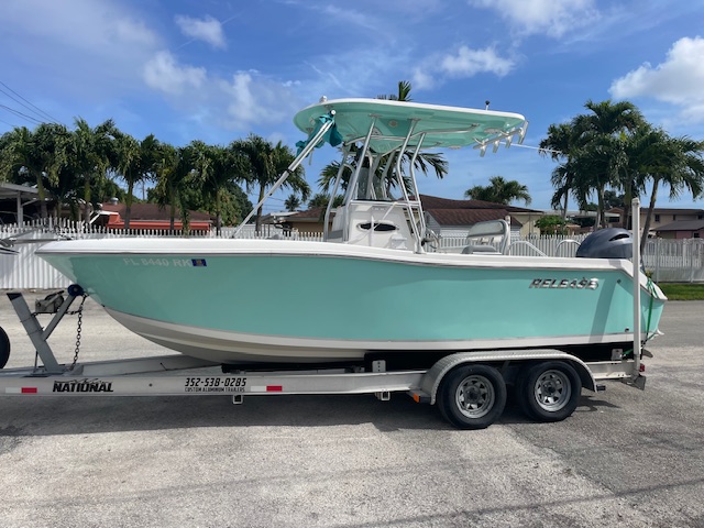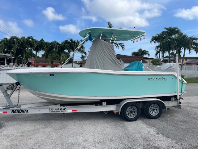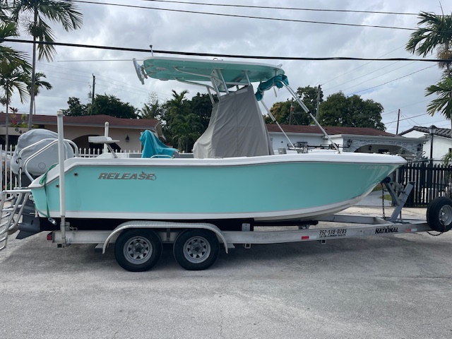 2018 Release 21 Center console. Powered with a Yamaha 150HP outboard motor with a stainless steel prop. Only 160 hours on the motor. Last serviced in June of 2023. Boat comes with T-top, console and leaning post cover, bimini top, twin batteries with switch, battery charger, plug in for electric reel, fresh water wash down, slat water washdown, fold down transom seats, porta potti enclosure, LED cockpit lights, LED cup holder lights, Yamaha Command Link Gauge, Garmin Color GPS, Stereo, VHF radio, compass, trim tabs, walk through transom with large fold down aluminum ladder with hand rails an both sides, rod holders and Aluminum Trailer. This boat is in excellent condition and is ready to water test. for more information please call Patrick today. Financing Available. Hablamos Espanol!!