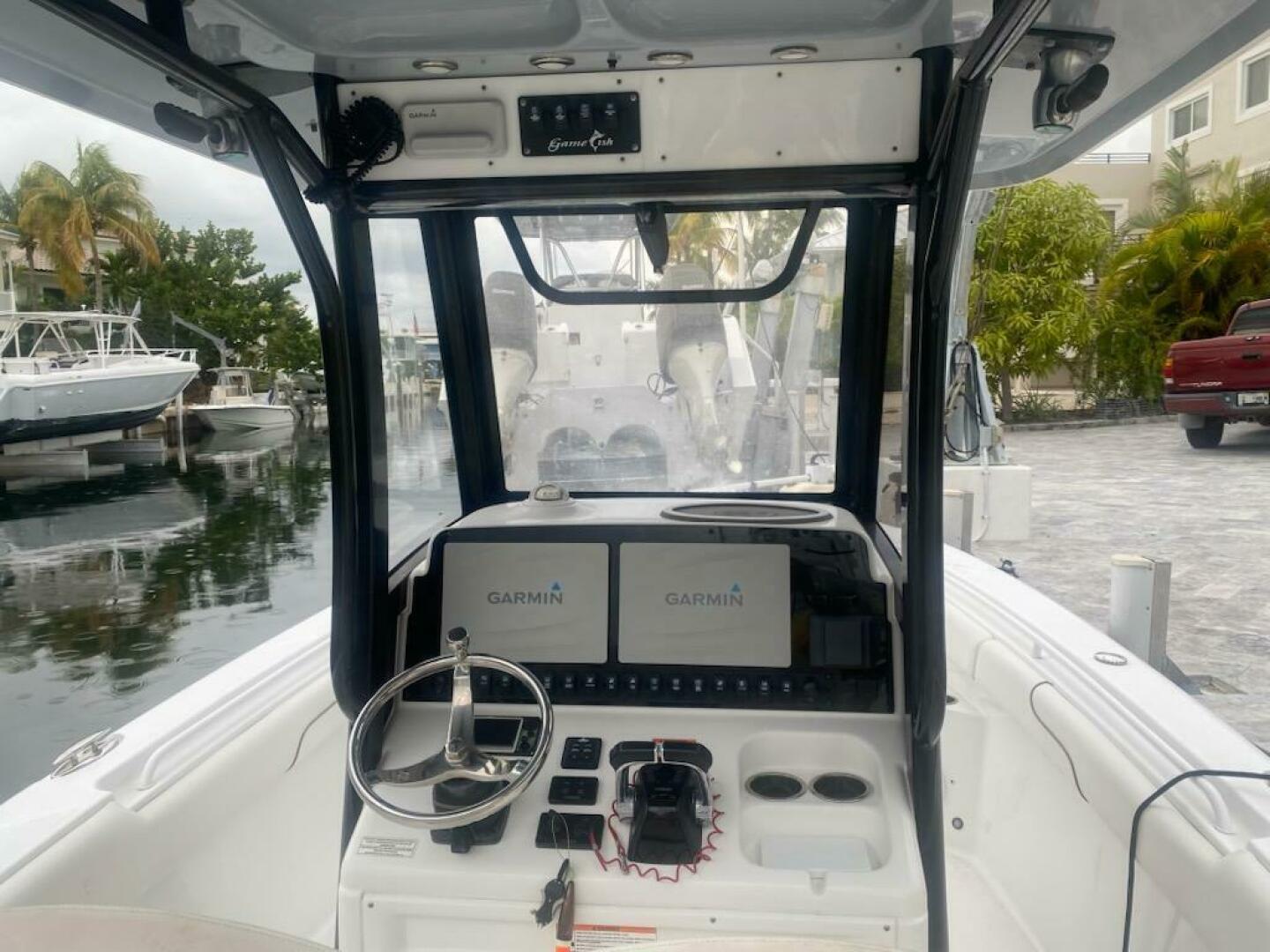Introducing the exquisite 2018 Sea Hunt Gamefish 27 Forward Seating—a true masterpiece that will capture the heart of any boating aficionado. This vessel seamlessly blends sleek, contemporary design with unmatched functionality, making it a standout both on the water and at the dock.Step aboard and you’ll immediately notice the inviting forward seating area, thoughtfully crafted for maximum comfort and relaxation. The helm is a captain’s dream, equipped with state-of-the-art electronics including dual 12” Garmin GPS chart plotters, a Garmin HD open array radar with an impressive 72-mile range, a VHF radio, and a premium stereo system—ensuring every journey is safe, informed, and enjoyable.Anglers will delight in the spacious live well, strategically placed for easy access and efficient use during fishing excursions. The boat is powered by twin Yamaha 200 HP engines (Model LF200XCA), offering robust performance for both leisurely cruises and exhilarating days on the open water. Recent upgrades include new fuel and water separators with stainless mounts, dual live well pumps, a saltwater washdown pump, freshwater washdown pump, and a misting pump—every detail designed for optimal convenience and reliability.Additional highlights include a Rule 2000A bilge pump, three batteries (two starting, one house), dual 3-bank 20amp battery chargers, and a Lewmar windlass for effortless anchoring. The 2018 Magic Tilt tandem axle trailer (LEGENDARY MARINE) comes with new tires (replaced in 2021, only 1,000 miles of use), making transport a breeze. For the dedicated fisherman, two deep drop rod holders and outlets have been added.While every vessel has its story, this Gamefish 27 is no exception. There is some front windshield crazing—a common issue with this model year—and a small stress crack on the port motor cowling, caused when the motor was lifted with the fish box lid down. These minor imperfections are far outweighed by the vessel’s many positives, including bow seating cushions and backrests that have never been used and remain in pristine, like-new condition.This 2018 Sea Hunt Gamefish 27 Forward Seating is not just a boat—it’s a statement of style, performance, and thoughtful design. Whether you’re chasing the next big catch or cruising with friends and family, this vessel promises unforgettable adventures on the water.