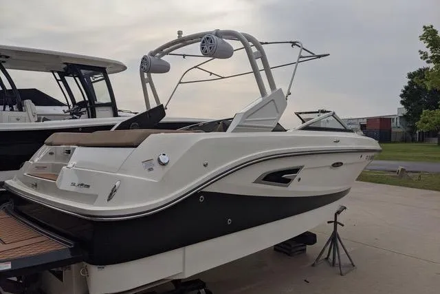 Freshwater / Great Lakes boat since new This 208 Sea Ray 230 SLX-W (Wake/Watersports) features a MerCruiser 6.2L TowSport V-Drive (370hp) with only 227 original hours, integrated 1920lb ballast system, Dynamic Running Surface, and a waterline bolt-on swim platform with SeaDek and an optional submersible swim step for enhanced water sports (Note Digital Throttle / Shift). Notable features include but are not limited to the following: Power Engine Hatch Lift, Canvas Package (Cockpit Mooring Cover, Convertible-Top), Also features an optional submersible manual swim platform, which folds down for easy water access, often with A telescopic ladder and a non-slip surface, Color Display at Helm, Premium Sound System, Inside racked stored when not in use, and MUCH more! No trailer