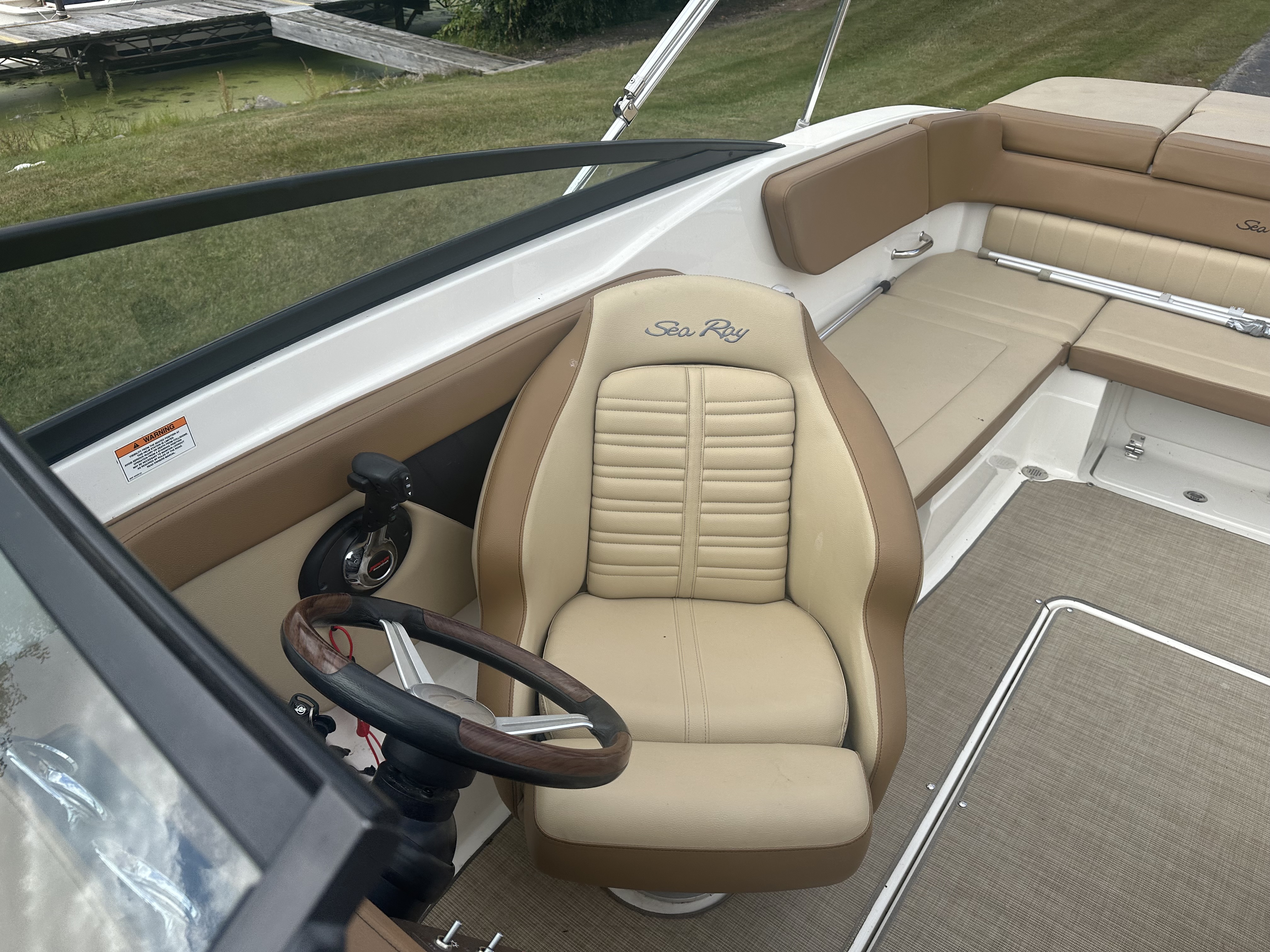 Experience the perfect blend of performance, style, and versatility with this 2018 Sea Ray 230 SPX Outboard, powered by a reliable Mercury 200HP engine. This 23-foot bowrider is designed for families and thrill-seekers alike, offering smooth handling, impressive acceleration, and room for up to 13 passengers. The spacious layout features plush seating, ample storage, a premium sound system, and an extended swim platform making it ideal for water sports, cruising, or relaxing in the sun. The outboard configuration maximizes interior space and simplifies maintenance, while Sea Ray's renowned craftsmanship ensures a high-quality finish and dependable ride. Whether you're exploring inland lakes or coastal waters, the 230 SPX delivers comfort and confidence every time you head out. With low hours and well-maintained condition, this boat is ready for your next adventure. Don't miss your chance to own a stylish, performance-driven bowrider from one of the most trusted names in boating