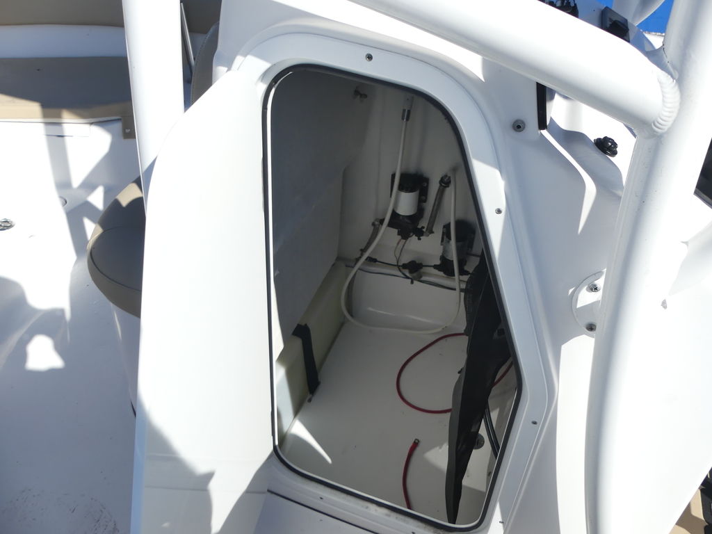 Console Front CoolerFlip the bottom cushion of the console-front seat to reveal an insulated cooler. Conveniently located for those sitting up front. You will also find the freshwater fill hidden under the cushion, if your boat is equipped with the freshwater system.