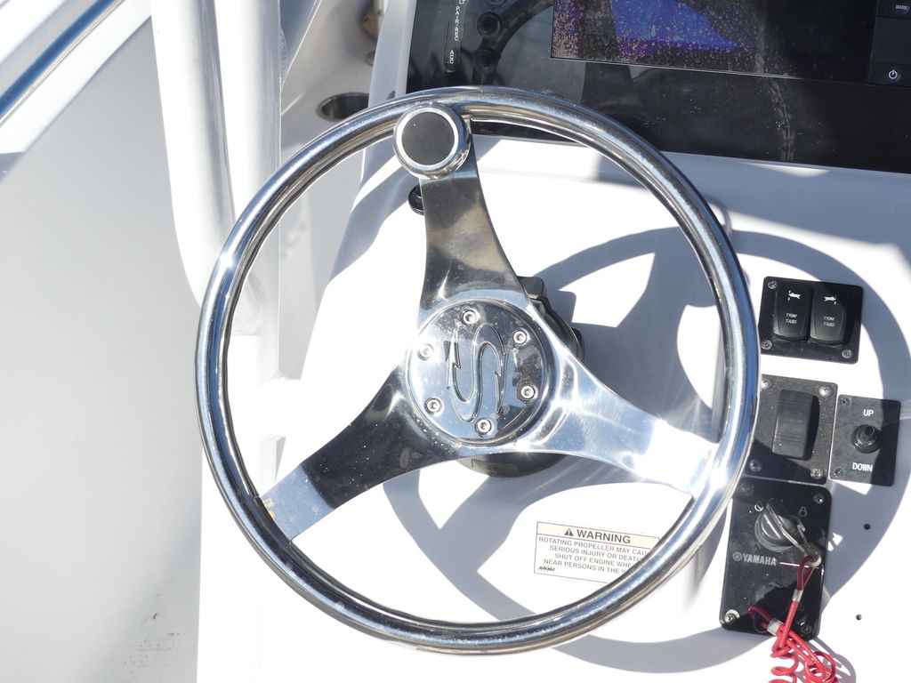 SeaStar Tilt Helm w/ SS WheelThe SeaStar Helm offers over 40 degrees of tilt and locks into 5 different positions and is paired to a high quality stainless steel Sportsman-branded steering wheel with knob. The console layout has comfortable ergonomics for the perfect steering position whether standing up or sitting down.