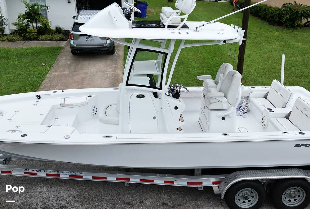 Powering this versatile bay boat is a Yamaha 350 HP engine, providing plenty of thrust to reach your favorite fishing spots quickly and efficiently. This boat's performance is complemented by its sleek design and thoughtful layout, making it an ideal choice for both avid anglers and weekend cruisers.
