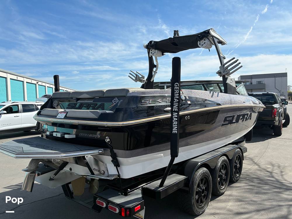 The SE 450 is Supra's largest and most spacious model, offering deep seating, premium finishes, and room for the whole crew. The factory Swell Surf system with integrated ballast and surf tabs allows you to dial in clean, customizable waves on either side. The V-drive layout and precision hull design make this boat equally capable for surfing, wakeboarding, or cruising.