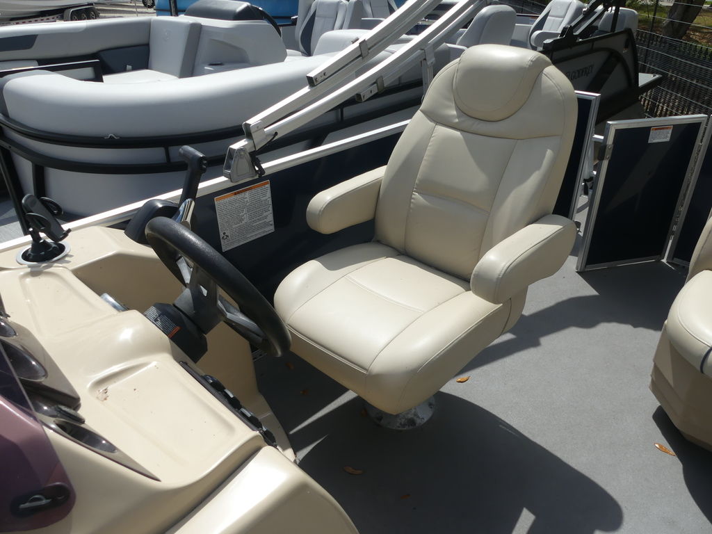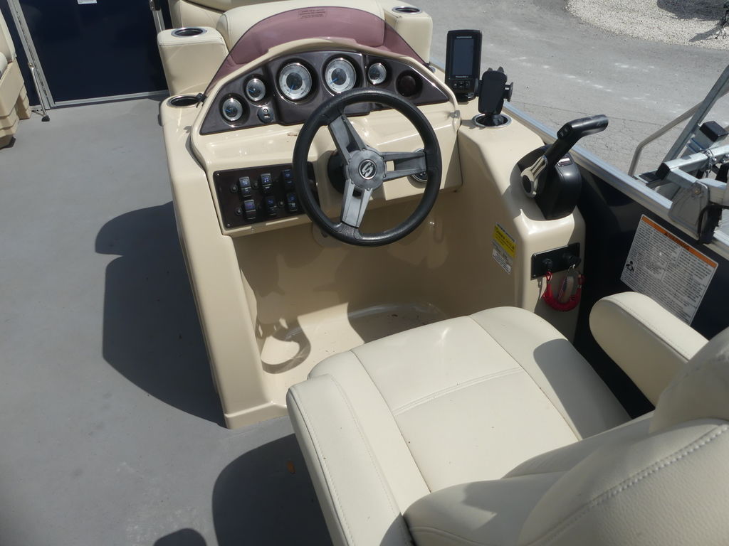 The helm station is designed with simplicity and convenience in mind. The captain’s chair provides a comfortable vantage point while navigating, and the easy-to-use controls make handling the boat straightforward even for newer boaters. The clean dashboard layout also leaves room for optional electronics or navigation equipment if desired.