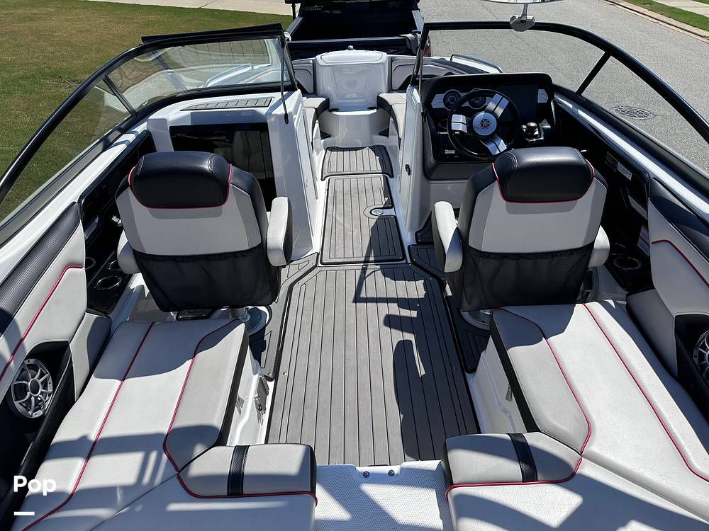 Ample storage compartments, a swim platform with a ladder aft, and premium bow upholstery add to the boat's appeal, ensuring comfort and convenience throughout your day on the water.