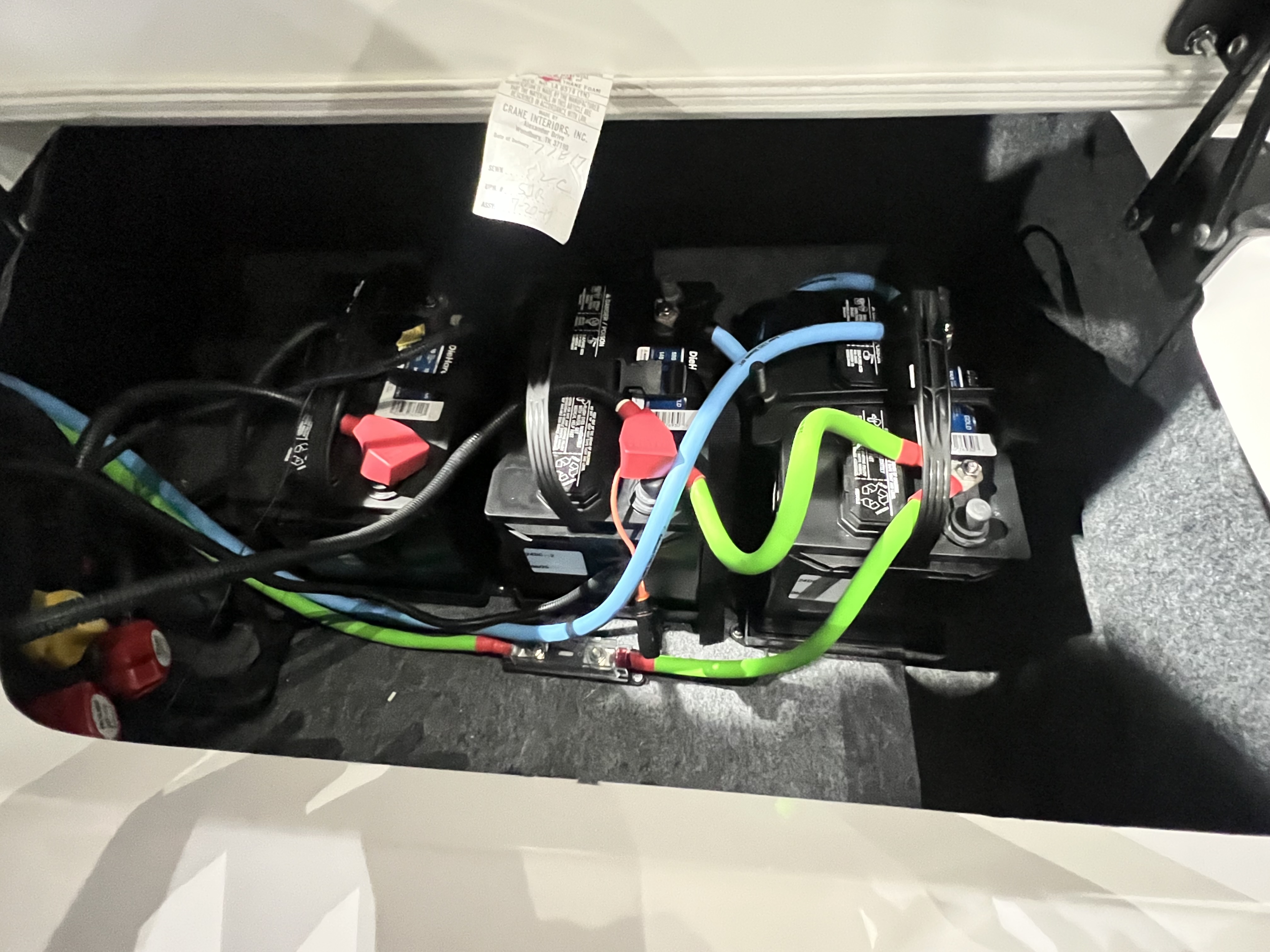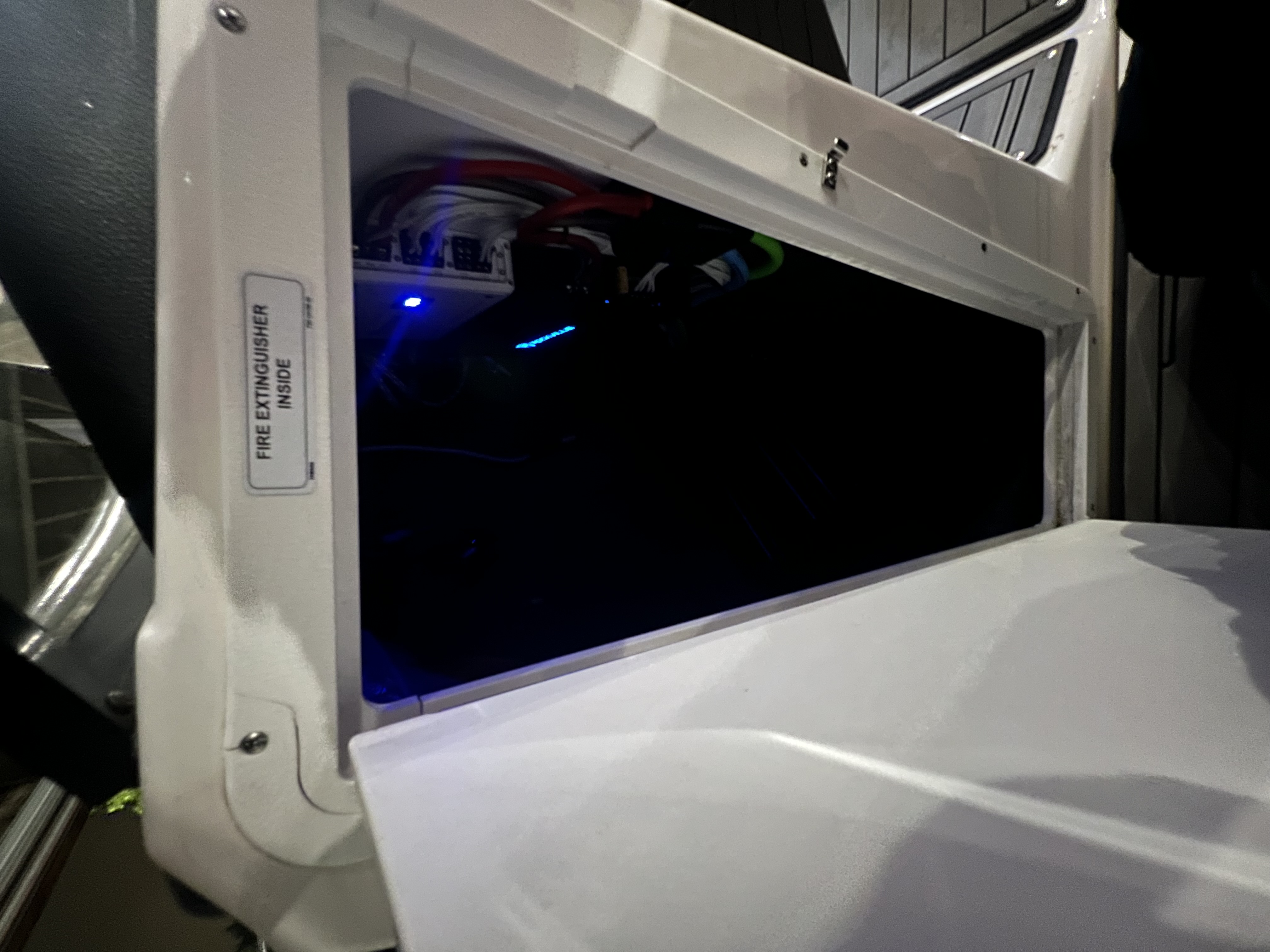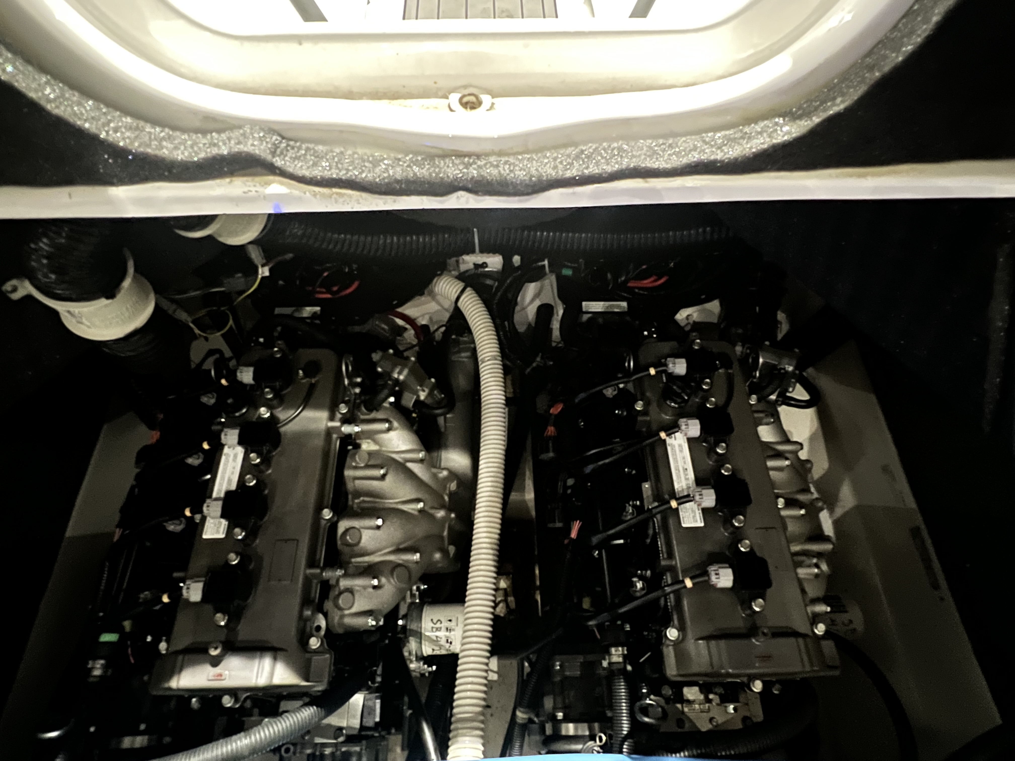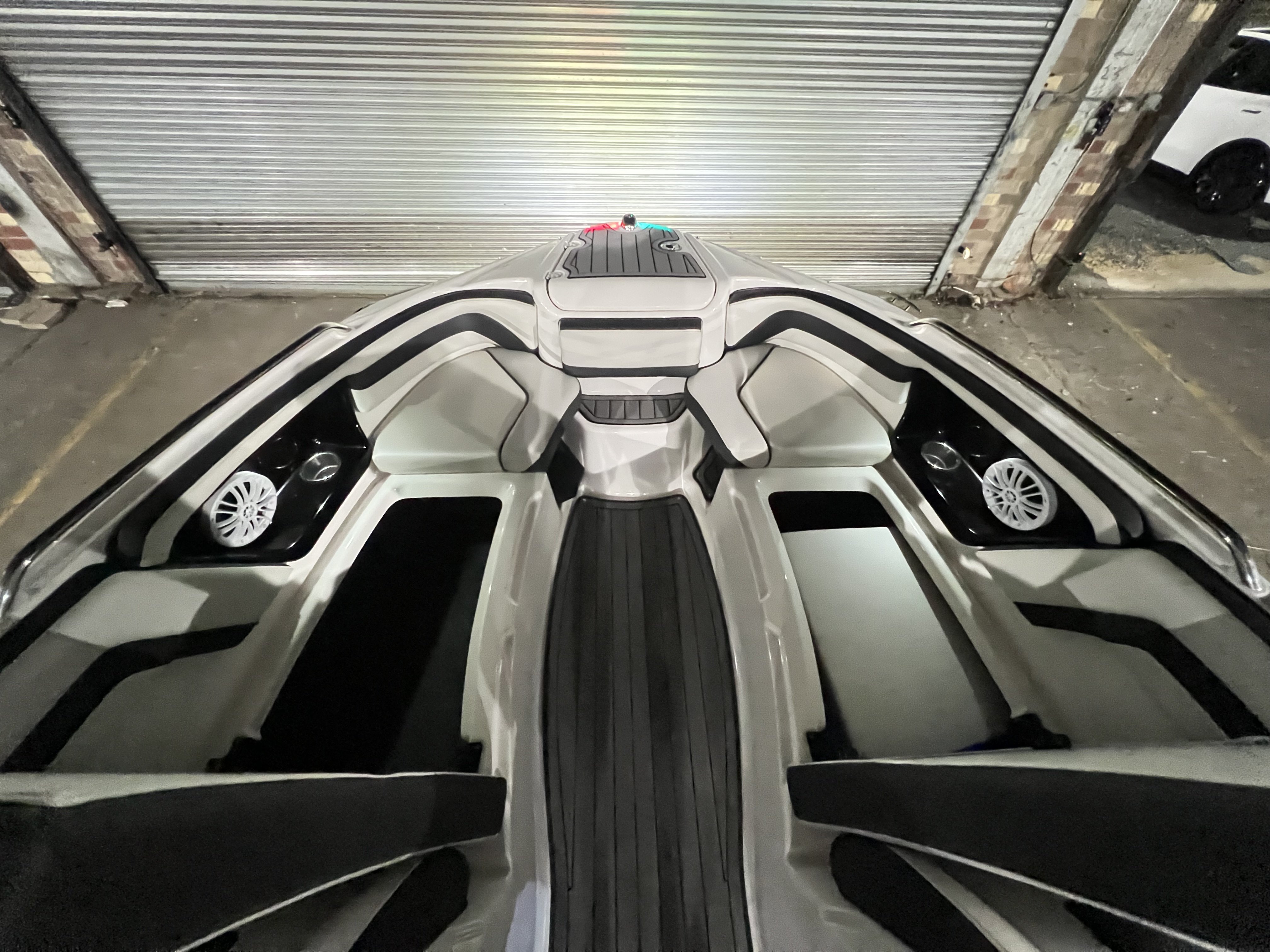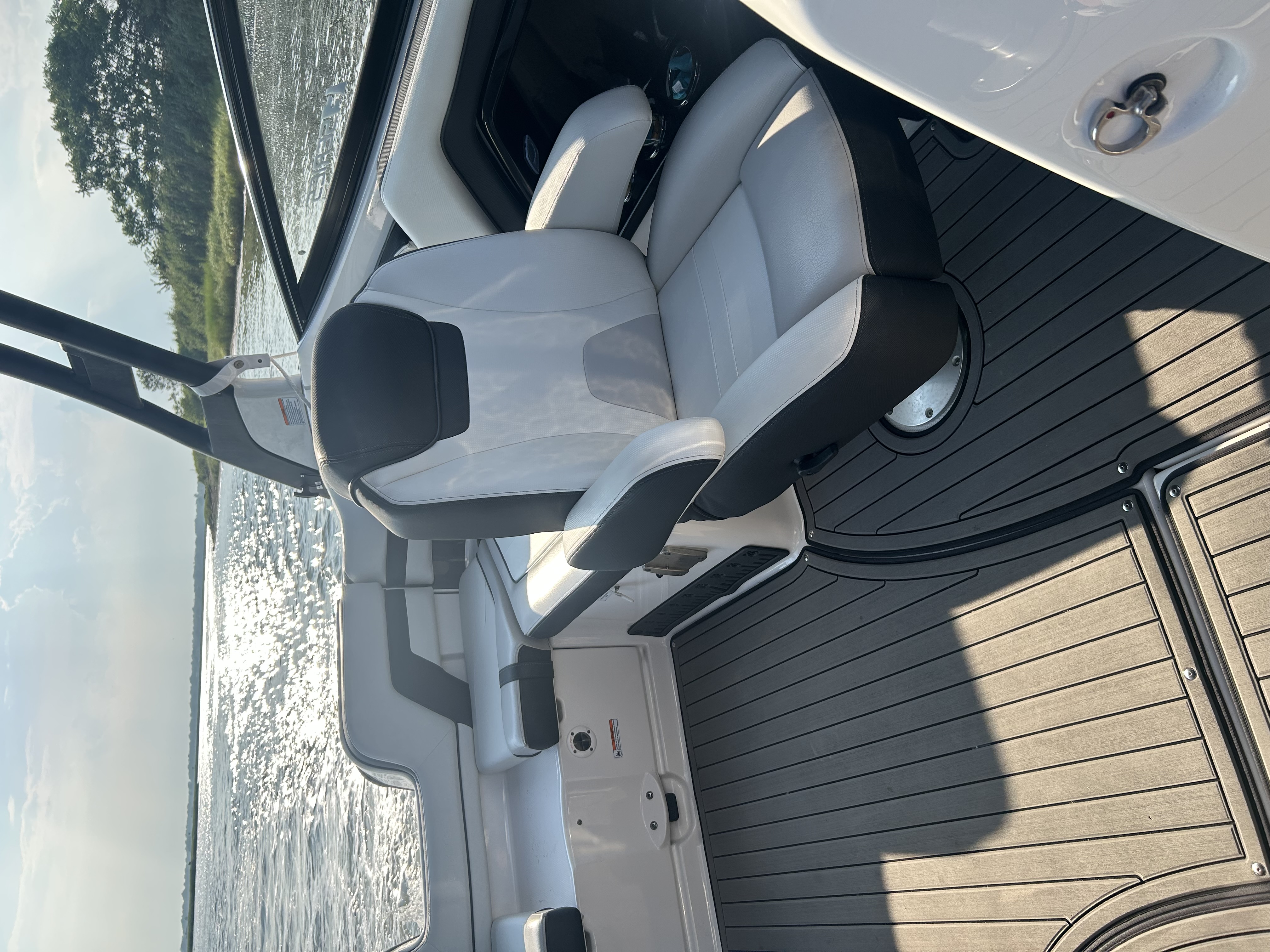 • Convenience: Retractable boarding ladders at bow and stern, fresh water shower on swim platform, dual 12V plugs (helm and swim platform), and snap-in marine-grade non-slip mats for easy cleaning