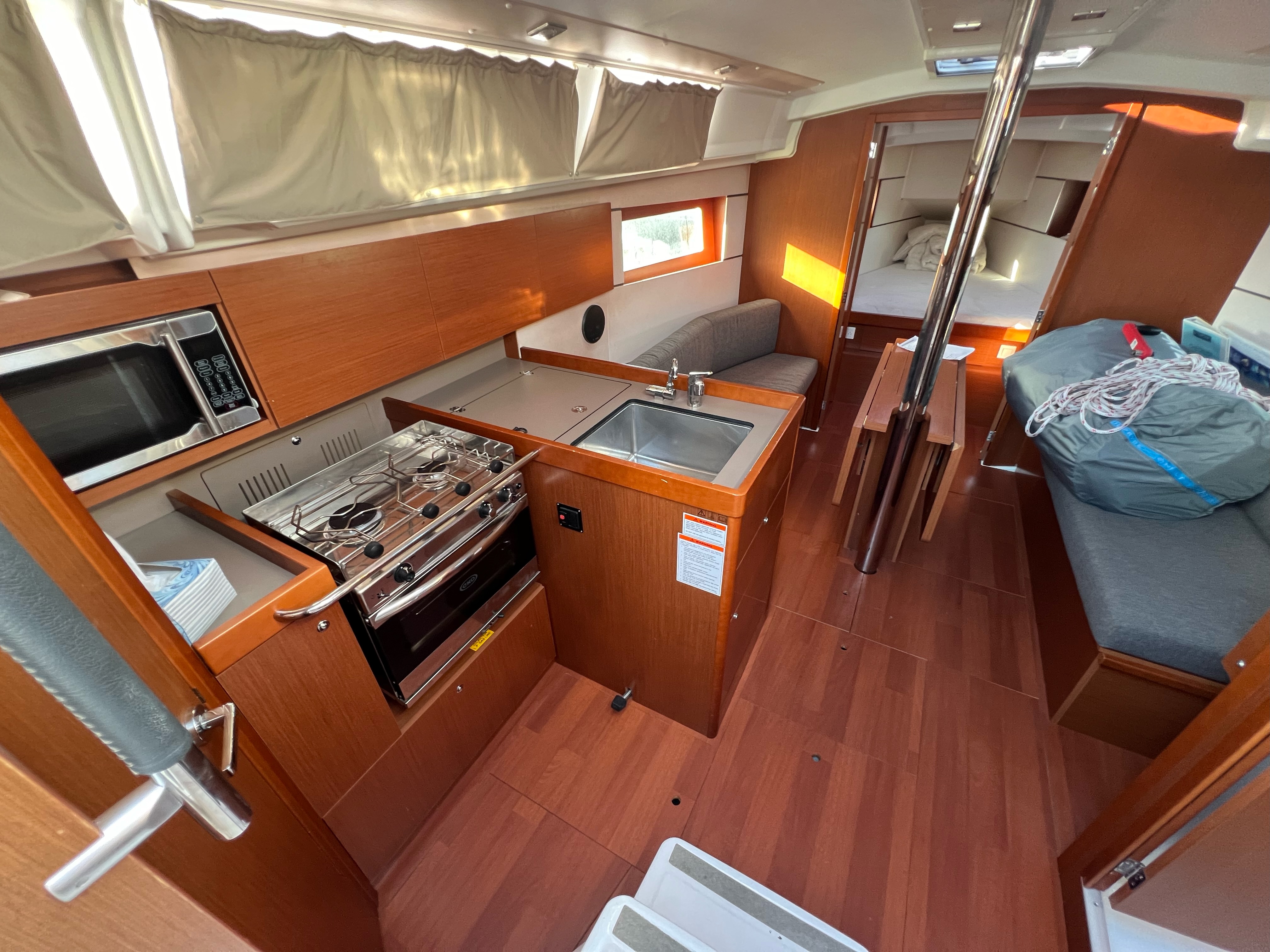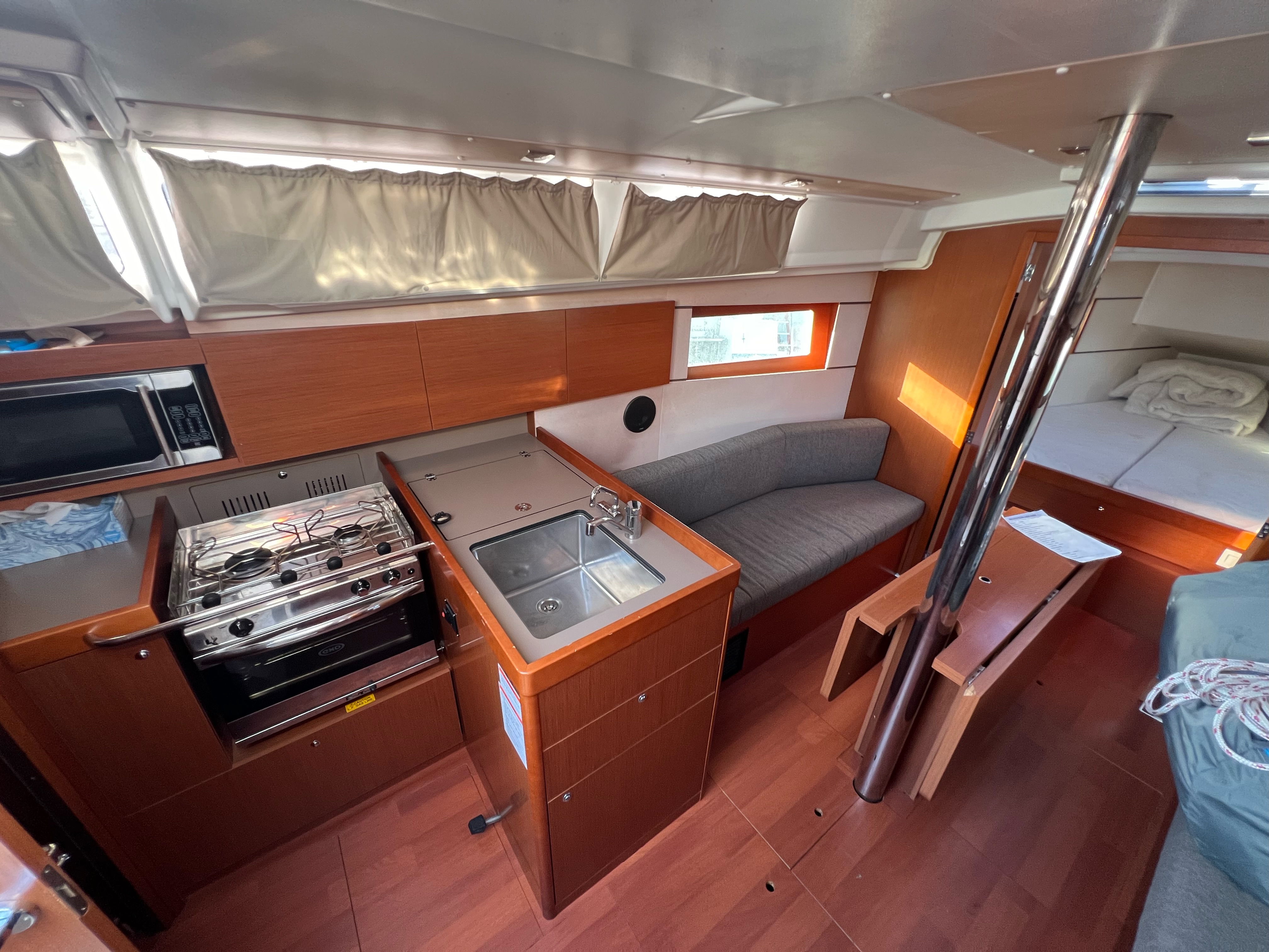 • Galley with 100 L / 26 US Gal cool box instead of the 130 L / 34 US Gal fridge