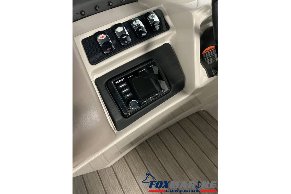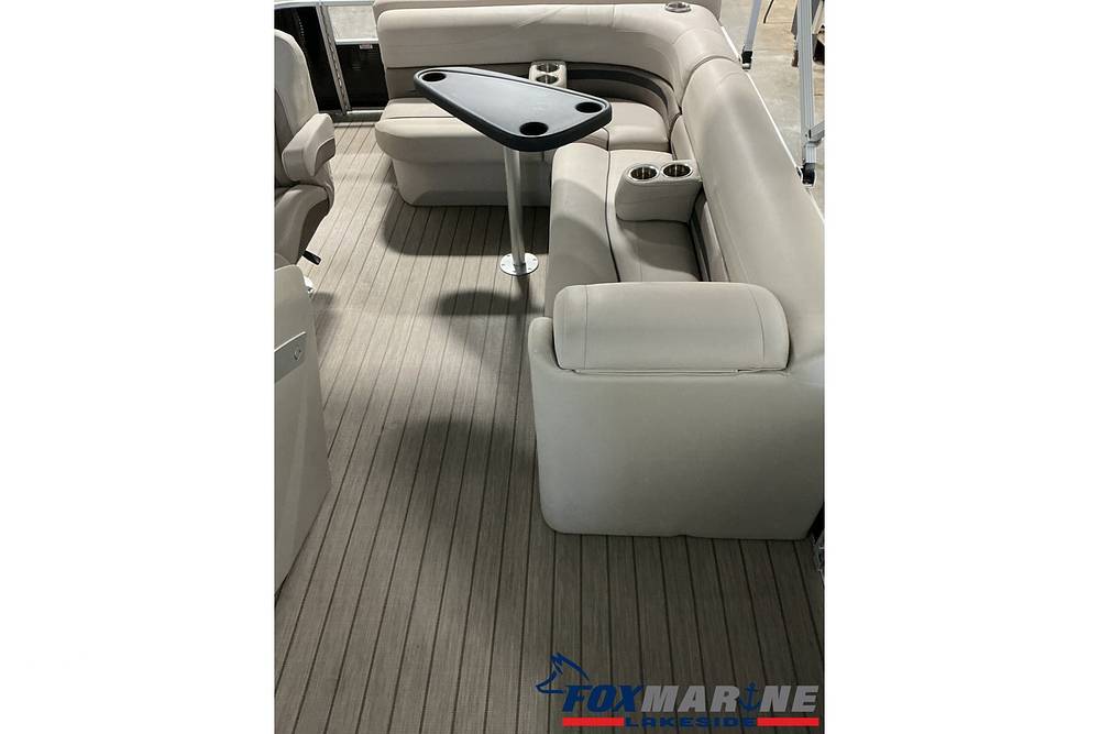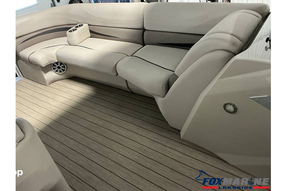 Stepping onto the deck, you'll immediately notice the premium Simtex upholstery and high-end finishes that set the G Series apart from standard pontoons.