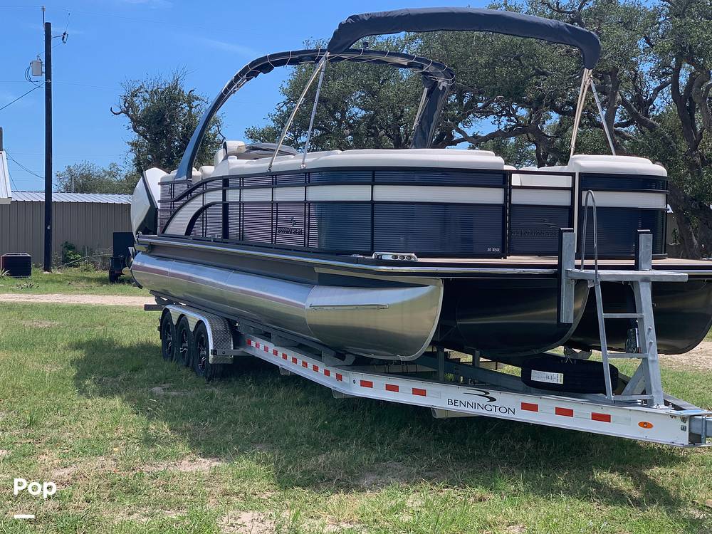 The 2019 Bennington 30RSR is a luxurious and spacious tritoon designed for those who seek both performance and comfort on the water. This boat has been adapted and is wheelchair accessible, ensuring ease of access for all guests. Powered with twin 2019 Evinrude 300 horsepower engines and a power pole, it offers impressive performance and smooth cruising.