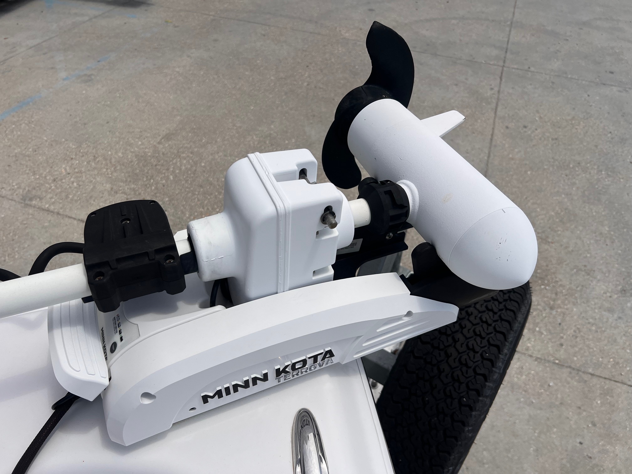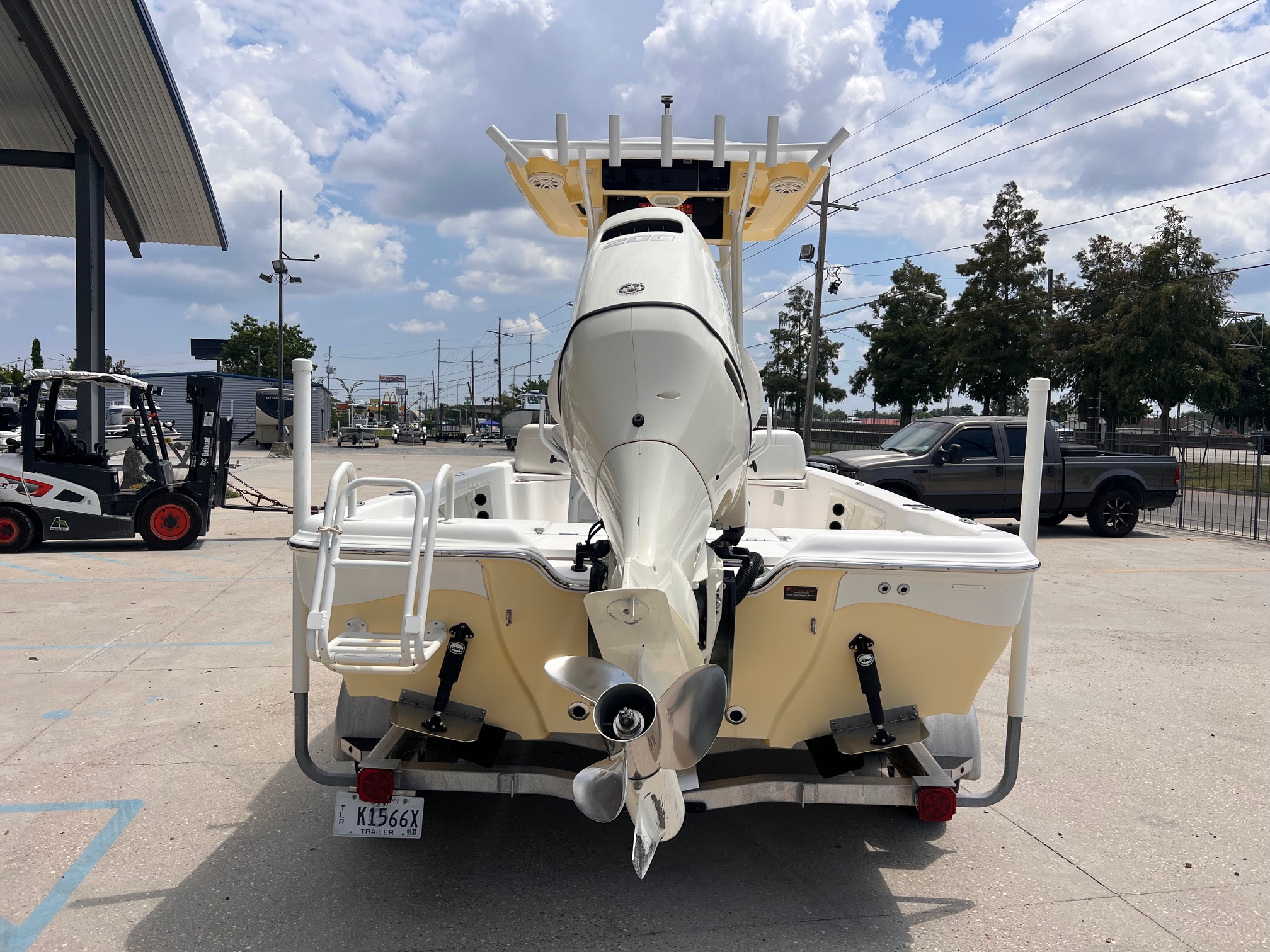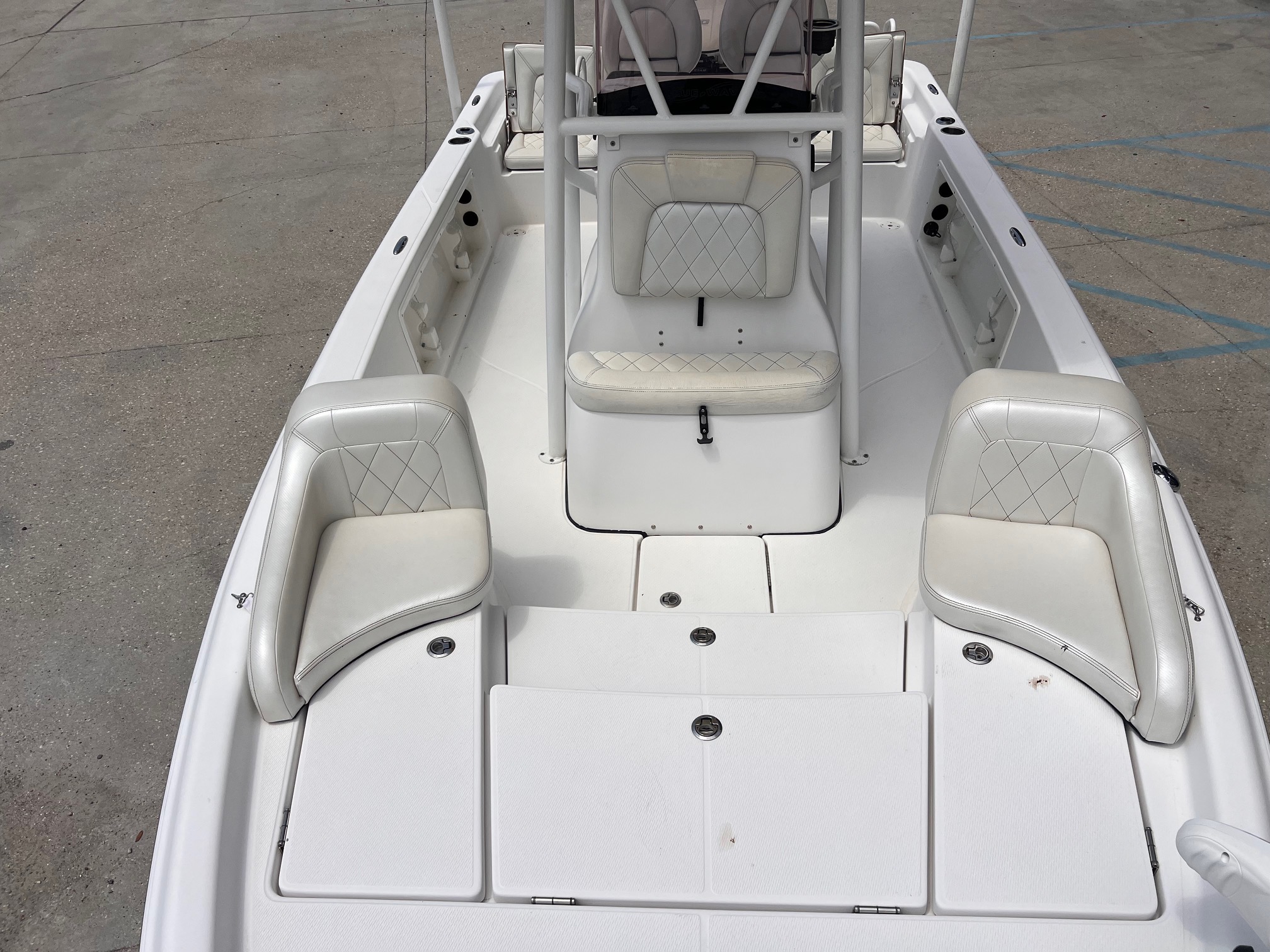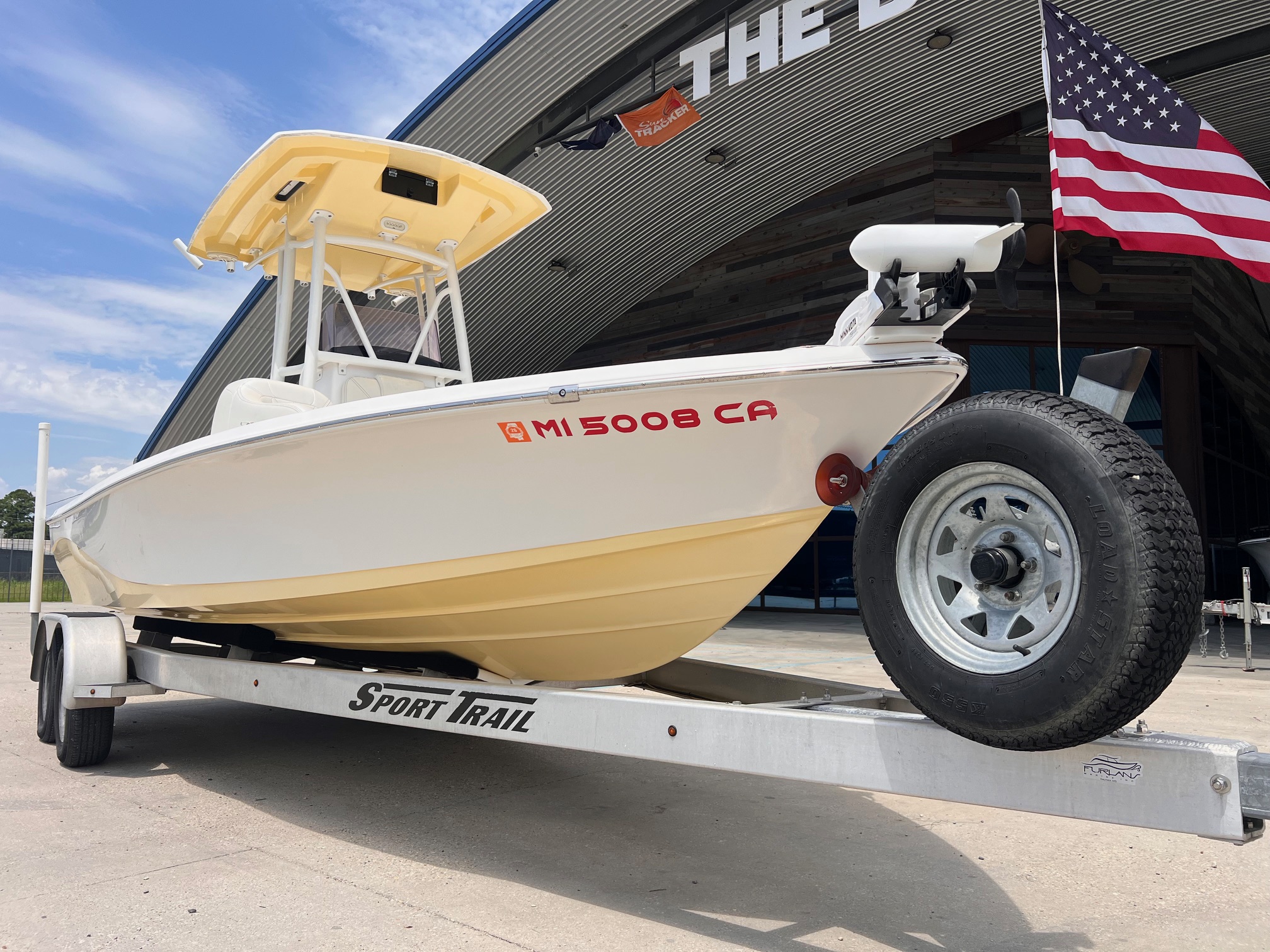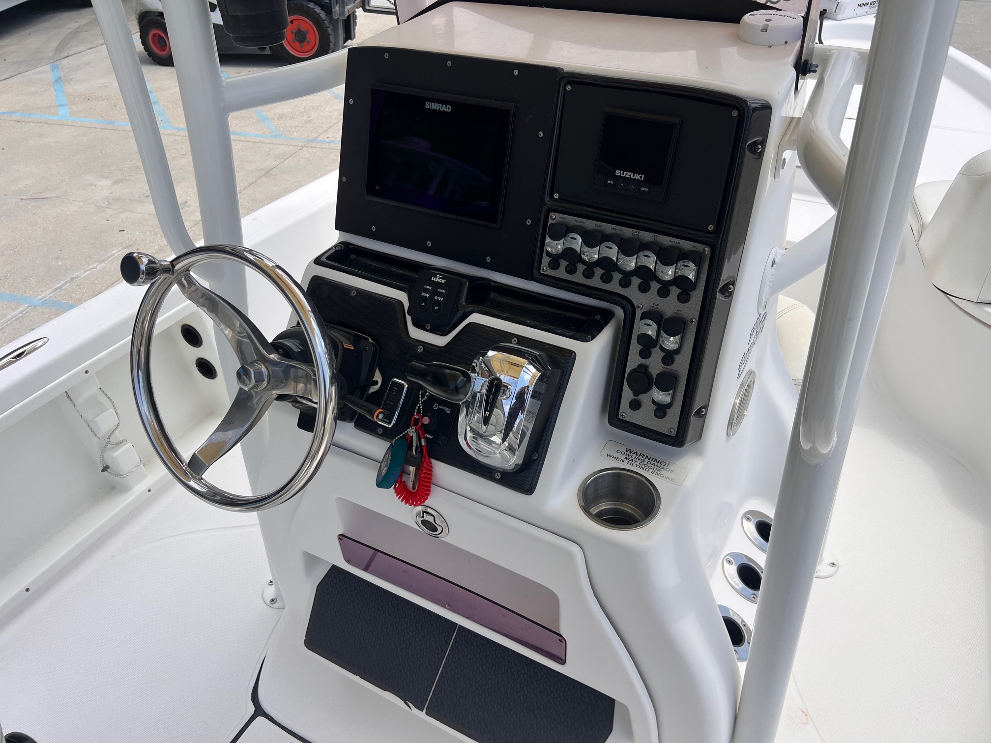 The 2019 Blue Wave 2200 Pure Bay is a fiberglass bay boat with a length of 21'4" and a beam of 8'6", designed for shallow water use and multi-species fishing. This Blue wave has a 12-inch draft, and an 8-person capacity.