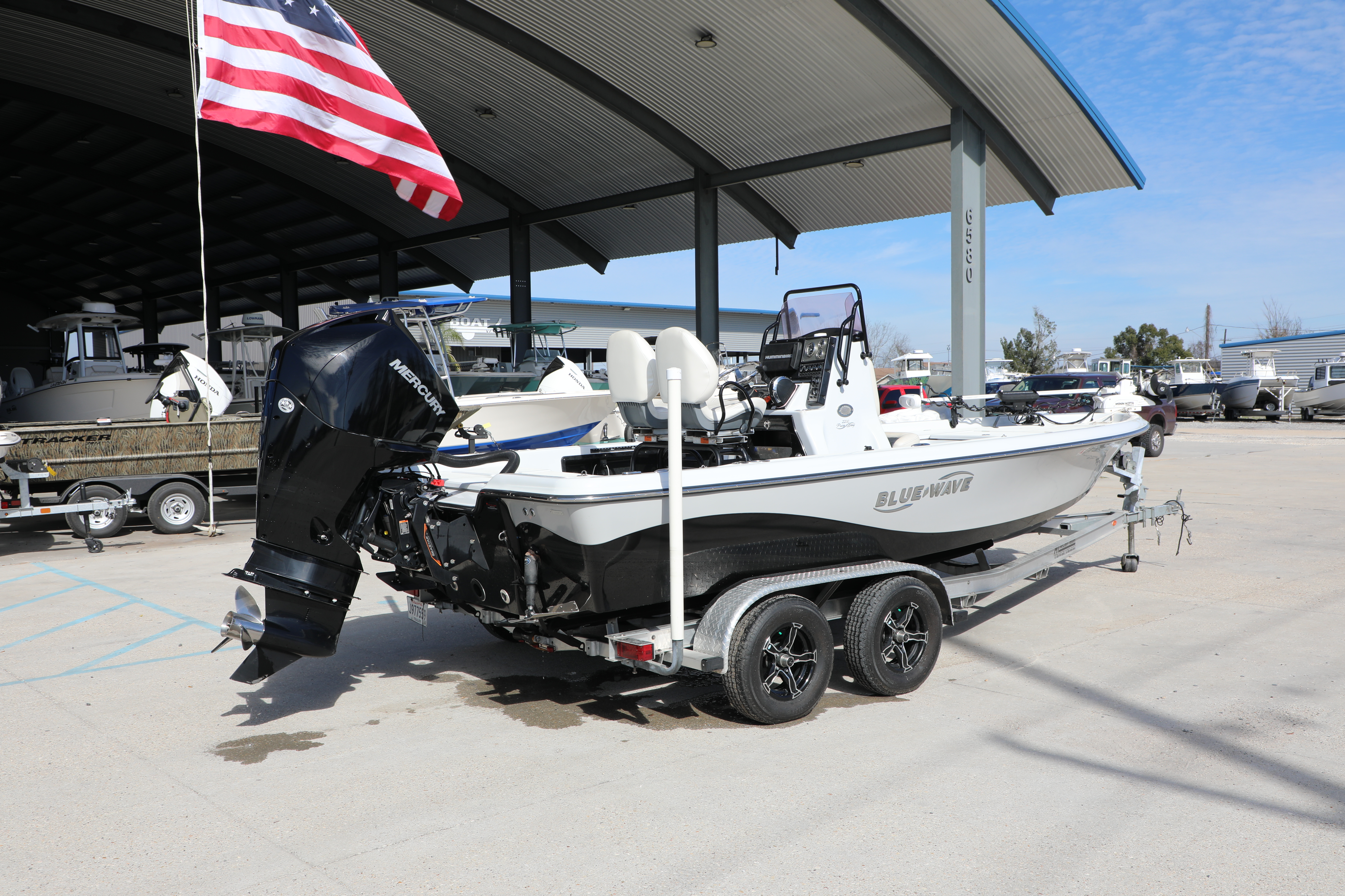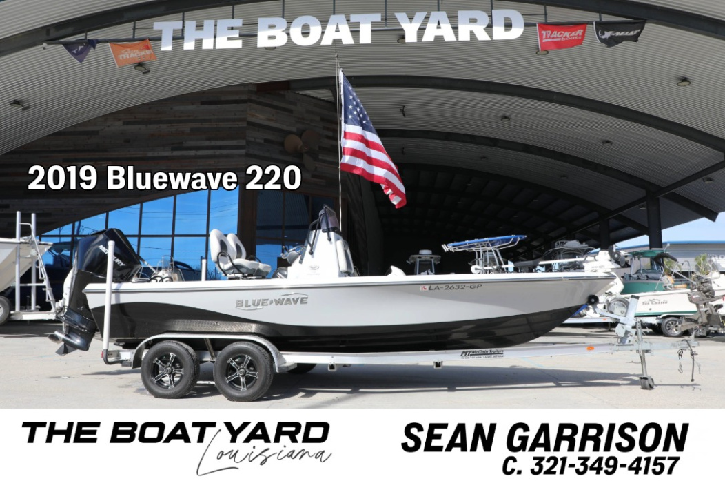 The 2019 Blue Wave 2200 Pure Bay is a 21-foot 4-inch, high-performance center console bay boat, often featuring a Merc 225 HP engine, ideal for both shallow backwater and nearshore fishing. It boasts a 1,700 lb weight, 102-inch beam, ~55-60 gal fuel capacity, and 12-inch draft, featuring a modified-V hull for stability.