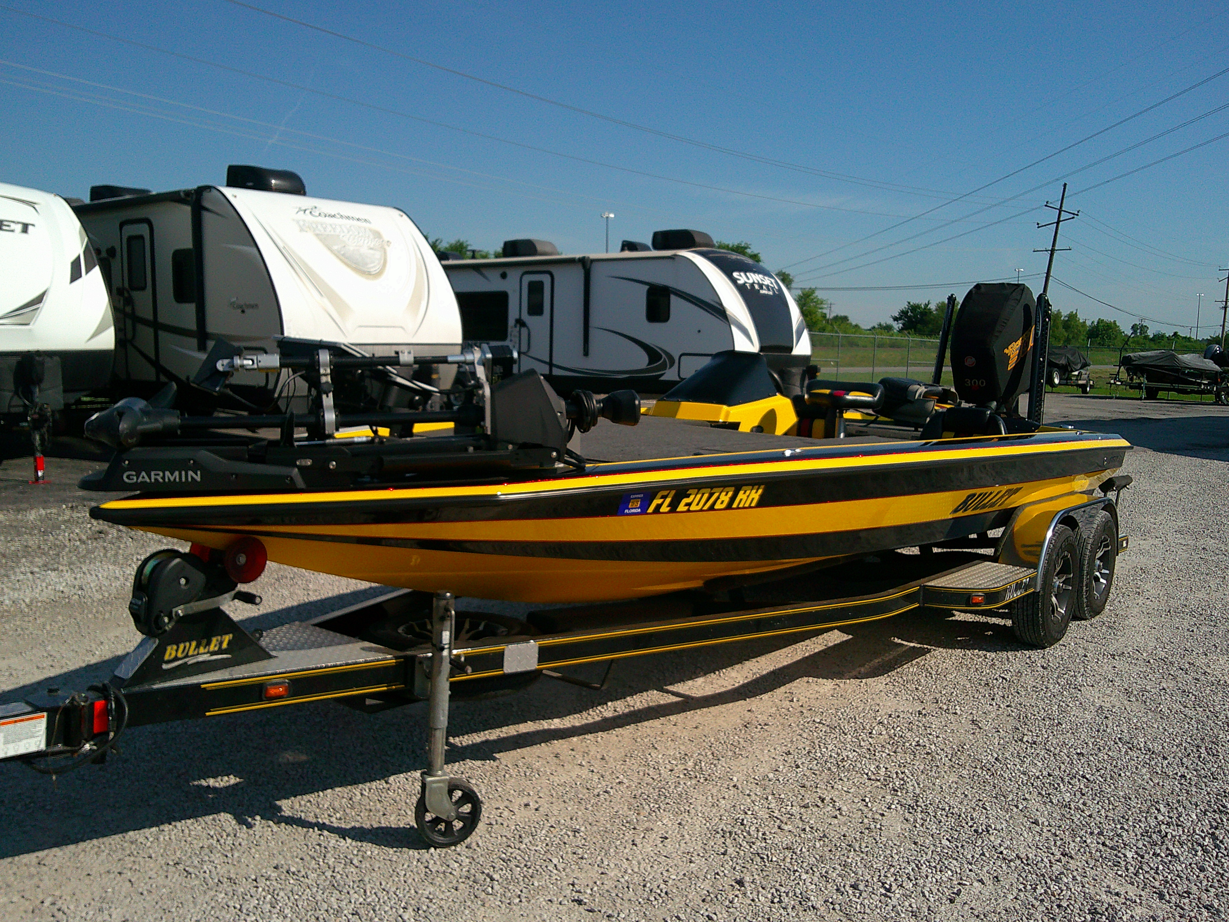 2017 Bullet, 21XRD, powered by a Mercury 300, sportsmaster lower unit, Garmin trolling motor, Livescope with LiveFoot turret, Garmin 16, Garmin 10 at bow, Garmin 10 at console, hot foot, double pro trim, Atlas hydraulic jackplate, dual powerpole with remotes and stomp switches. Custom cover--very clean boat. Lithium batteries for all electronics and trolling motor. AGM starting battery.