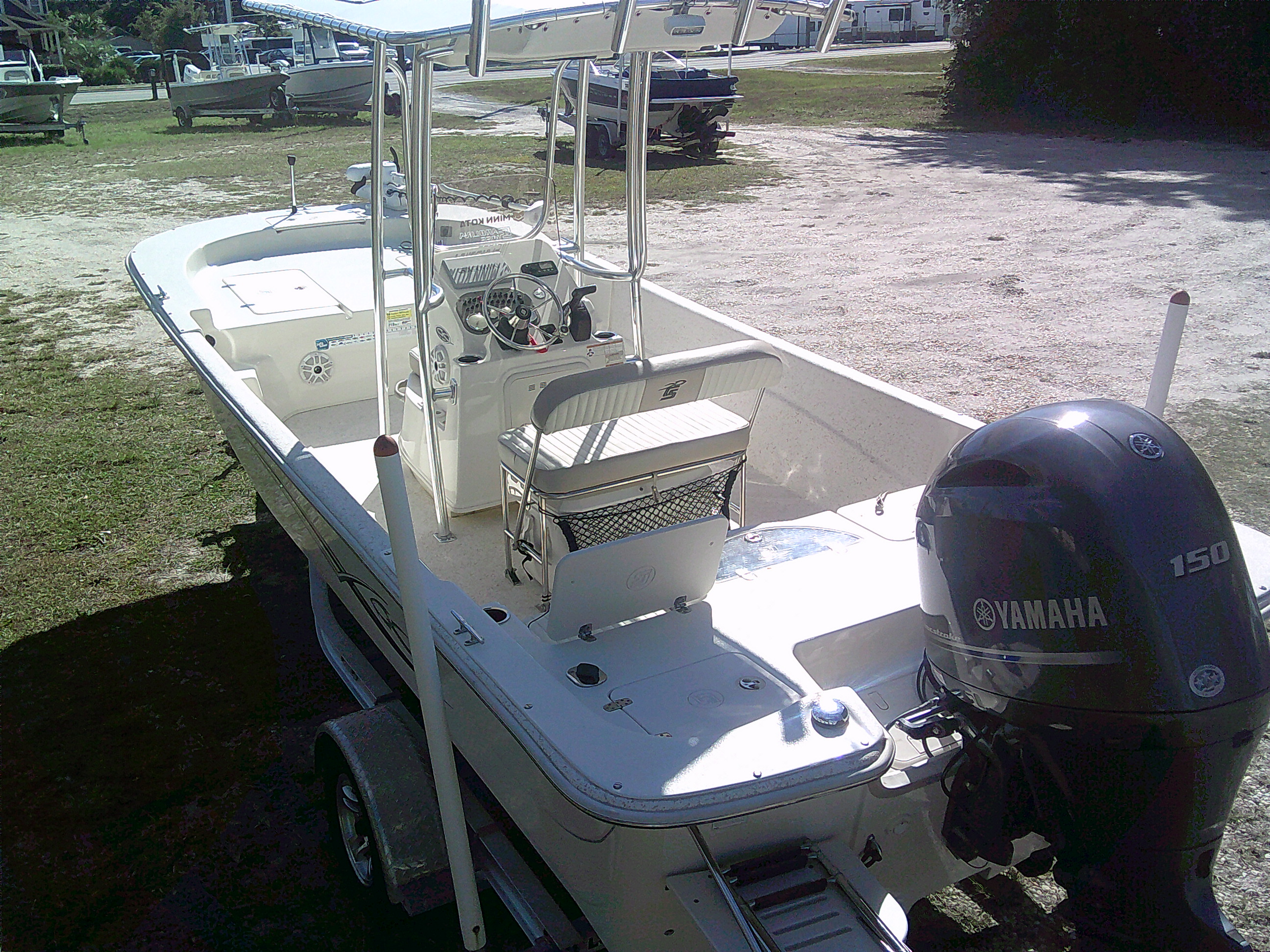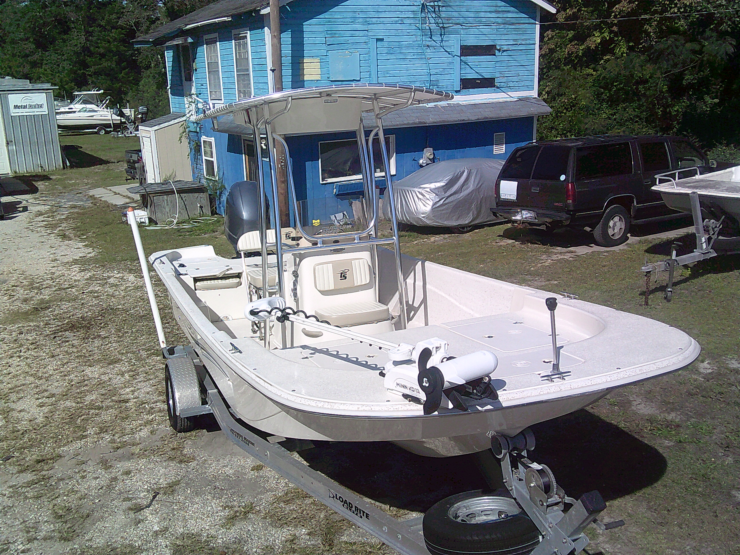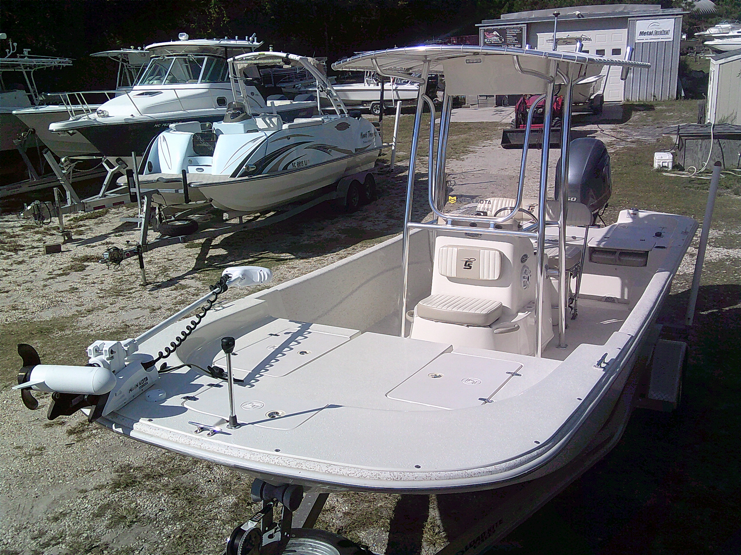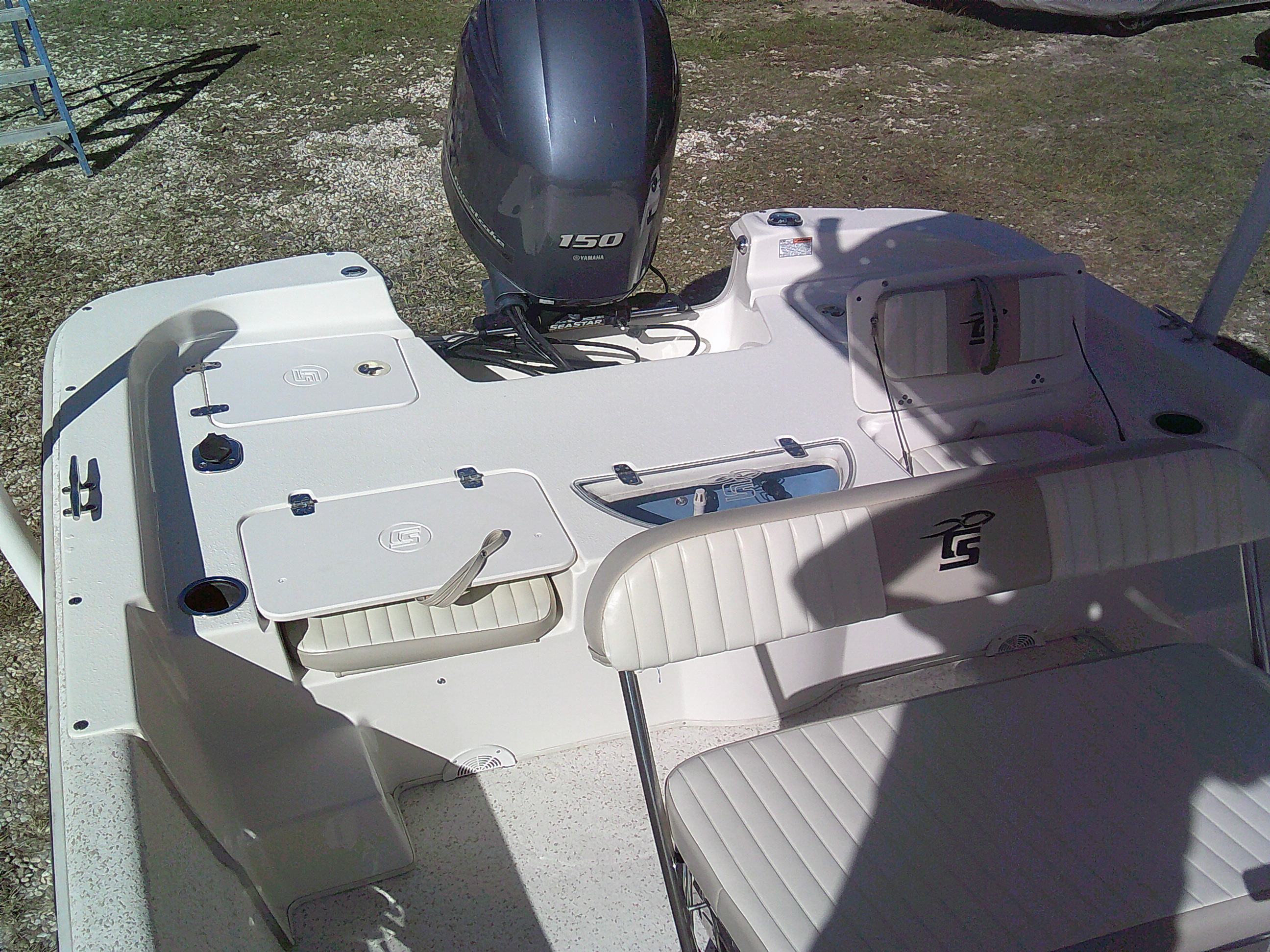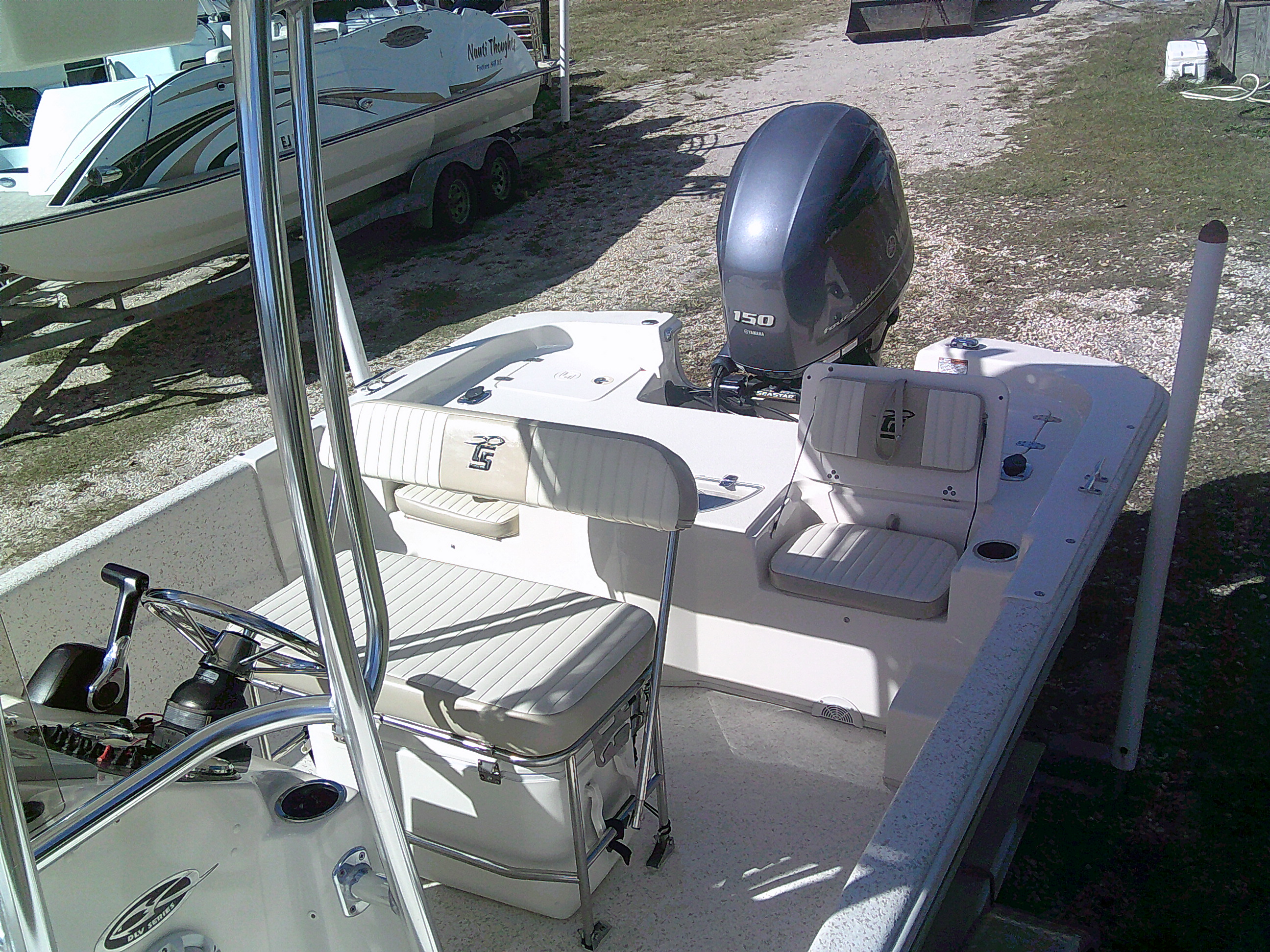 Vessel Info: Large Forward Platform, Perfect for Throwing a Cast Net, Fishing or Sunning w/Anchor Locker w/Anchor, Chain, Line, Minn Kota Terrova I-Polit Trolling Motor, 24 Volts, 80Lbs Thrust, 2 Large Storage Boxes, EZ Step to Platform, 2 Speakers / Forward of Console Cushioned Seat/Live-Well/Cooler w/Back Rest, 2 Cup Holders, Grab Rails / T-Top w/ Weblon Top, Elc Box, Grab Rails, Forward and Aft LED Spreaders Lights, T-Bag, 4 Rod Holders / Console w/Wind Screen, Grab Rails, Gauges, Controls, Switch Panel, Stainless Steel Tilt Helm w/Hydraulic Steering and Knob, 2 Speakers, Cup Holders, Storage, 6 Side Rod Holders / Cushioned Helm Bench Seat w/Swing Back Rest, Cooler / Large Aft Platform w/ 2 Cushioned Jump Seats, Large Live Well, Storage, 2 In Deck Rod Holders / Self Bailing Deck / 2 Batteries w/ Switch / 2 Anchors