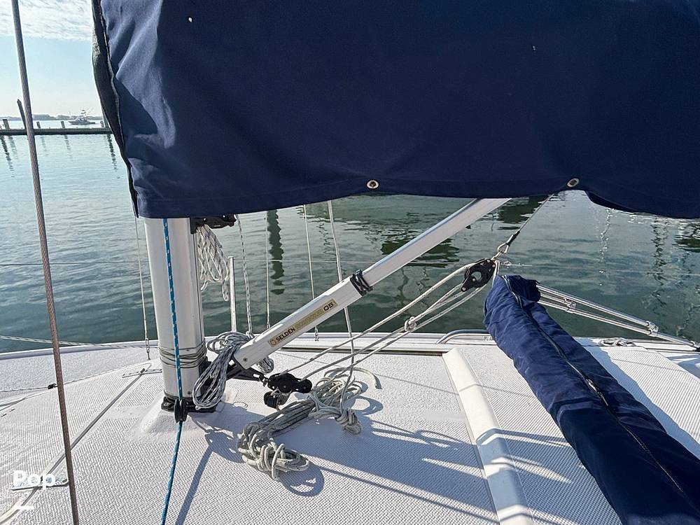 On deck, the large self-bailing cockpit comfortably accommodates a crew of six and features contoured coamings for added comfort during long sails.