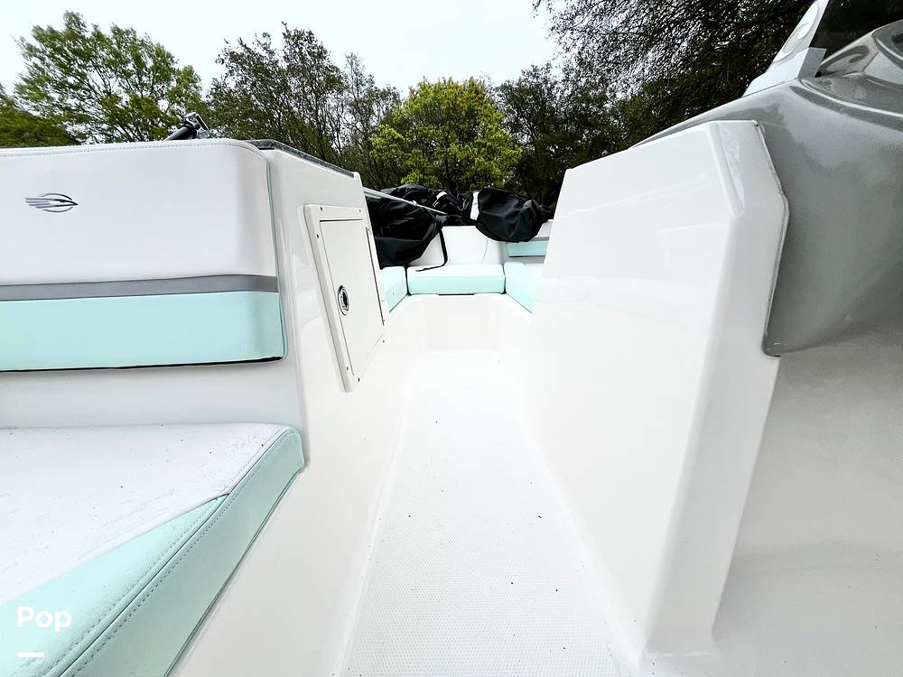 Family and guests will love the wet bar with a freshwater sink and the Bluetooth-enabled sound system. Stretch out in the bow seating or the wrap-around cockpit loungers. The swim step and swim ladder provide excellent access to water, and this Chaparral has a tow bar for water sports!