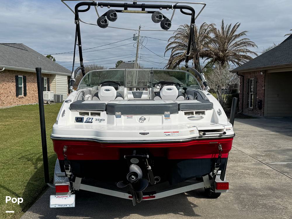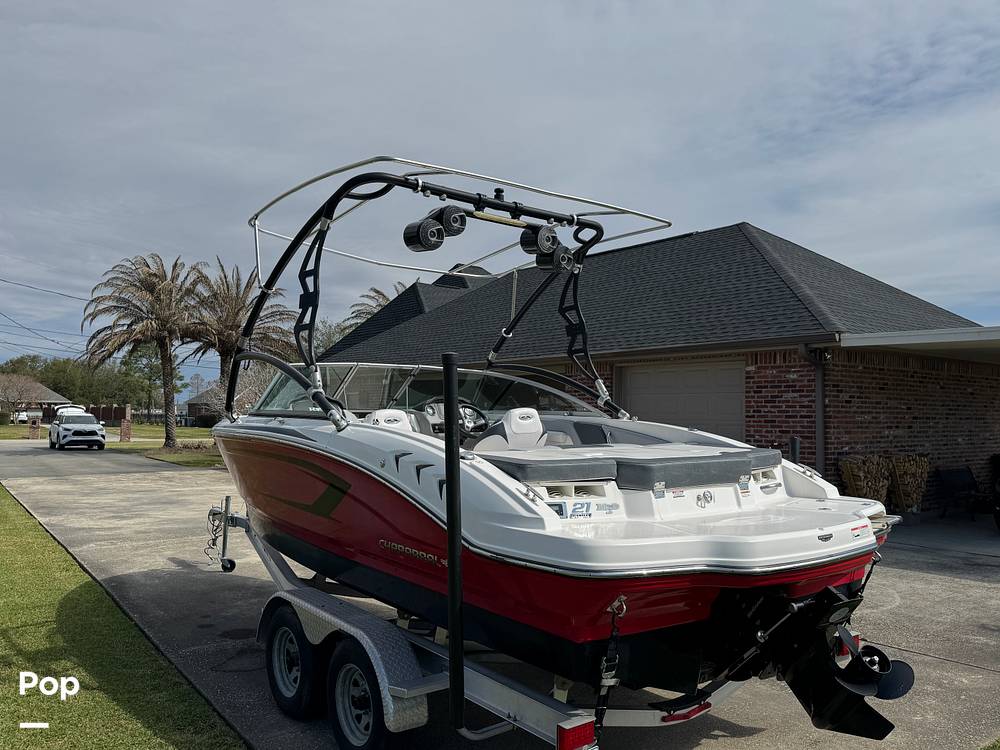 This 2019 CHAPARRAL21 H2O SPORT is powered by a powerful Mercruiser with Alpha One outdrive. The boat can reach speeds in excess of 45 mph, which is great for pulling skiers and tubes. It comes on a dual-axle aluminum trailer with brakes and a breakaway trailer tongue.