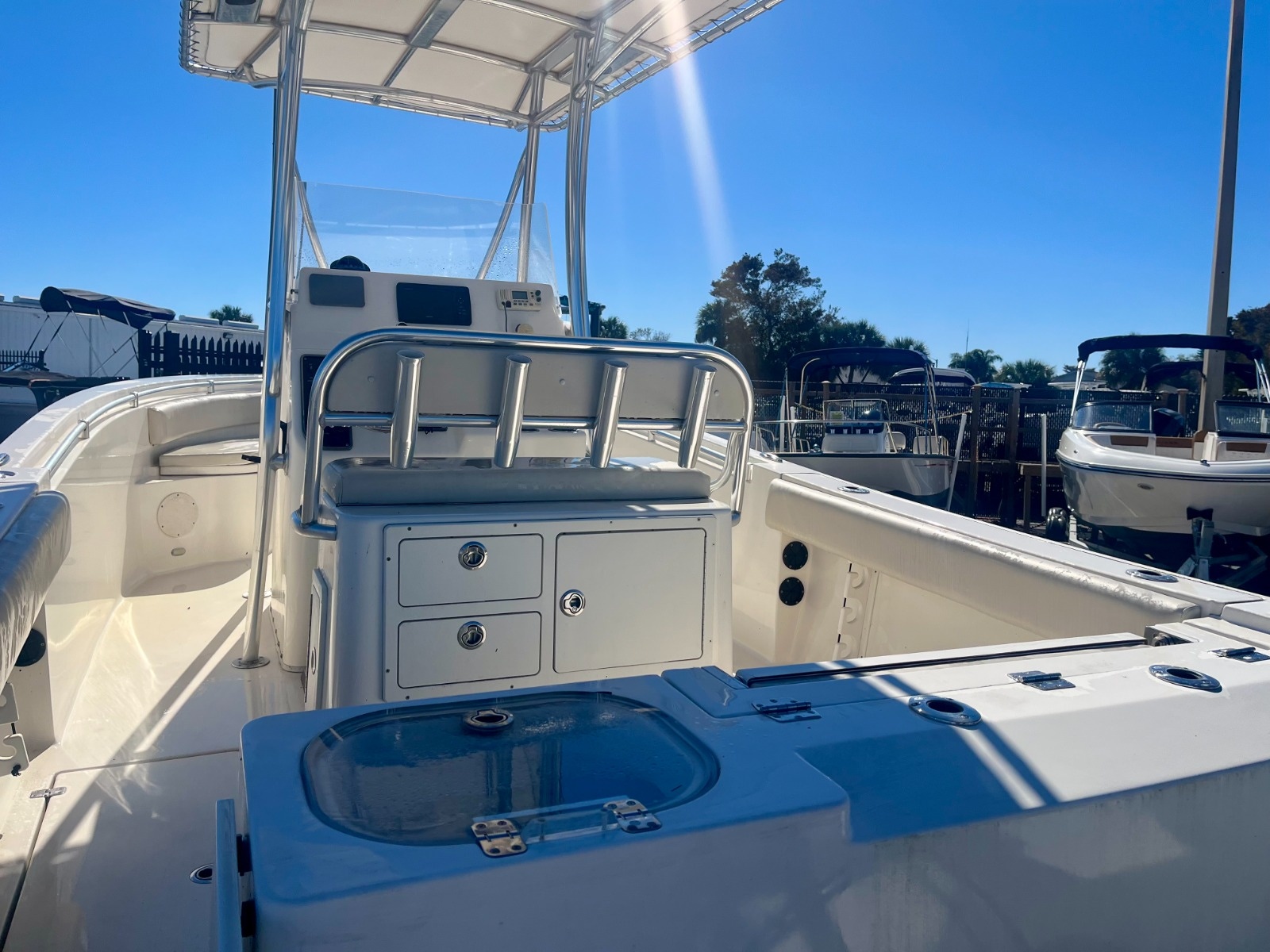 Tried and true, the venerable 237 CC gives you all you need in fishability and family cruising comfort. A stem to stern level deck, flush mount hardware, recessed bow rail, and hideaway aft bench seating provide a roomy and uncluttered fishing platform. Add to that standard features like an aerated 28 gallon livewell and two, in-deck 40 gallon fish boxes and this boat comes tournament ready. Schedule your sea trial today!
