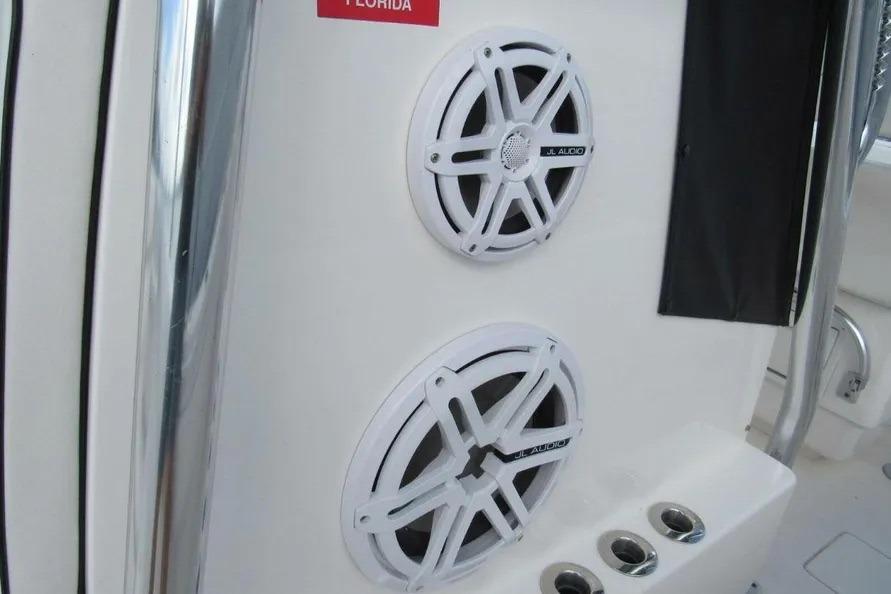 The deck plan is pure Contender: three livewells to stage bait, an actuated coffin box up front, and a starboard dive door for quick water access and easy boarding. Fusion sound with JL speakers keeps the crew energized between spots. Engines have been recently serviced (ECM downloads on request), and the included 2020 MYCO triple-axle trailer has just been serviced and is ready to roll, making relocation or haul-outs simple.