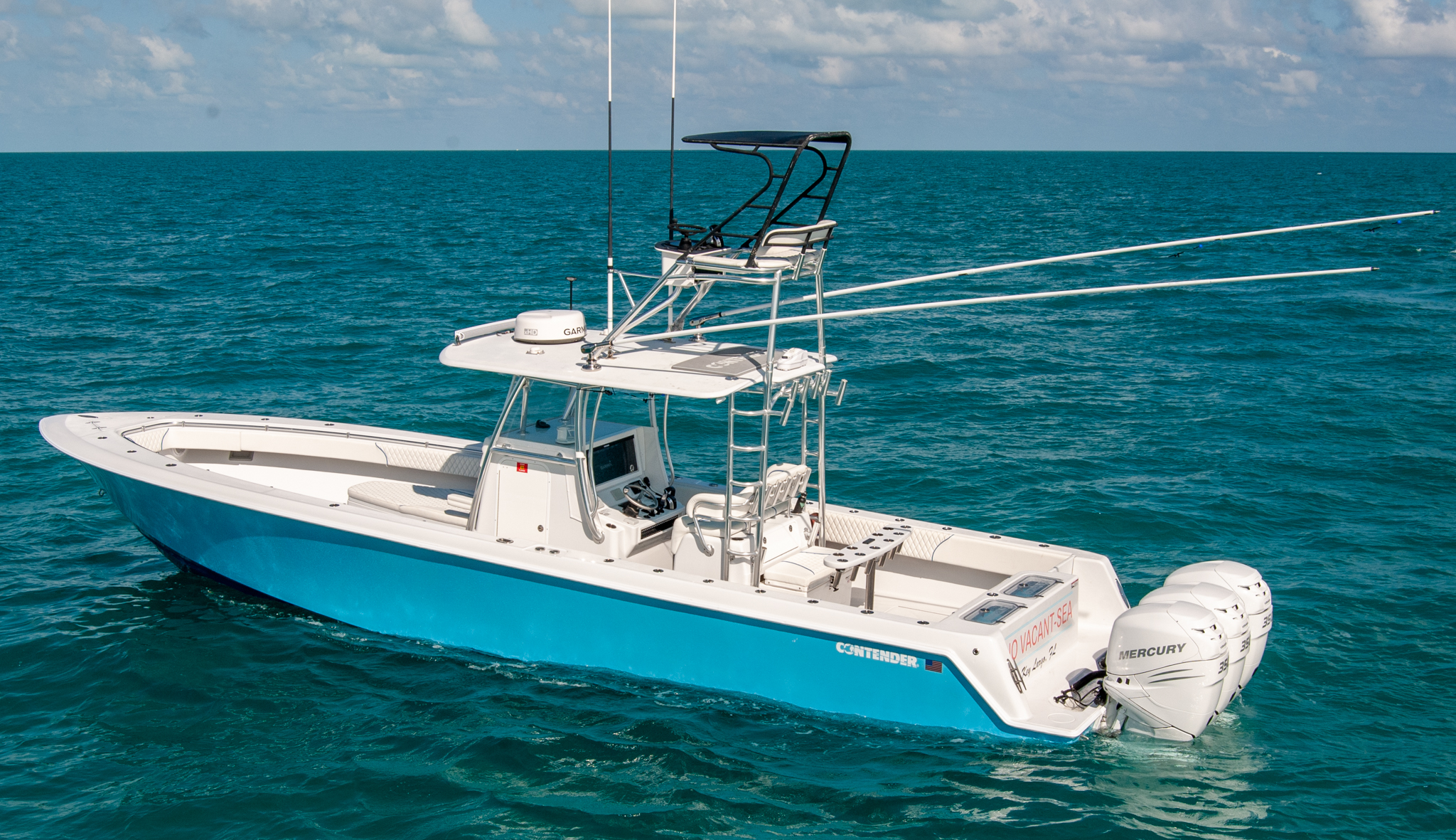 Looking for an edge on the water? Look no further than the unstoppable 39ST. With a fuel capacity of 500 GAL, a max horsepower rating of 1600 HP and one of the most advanced and thought-out fishing platforms on the water, the Contender 39ST will leave your competition in the dust.