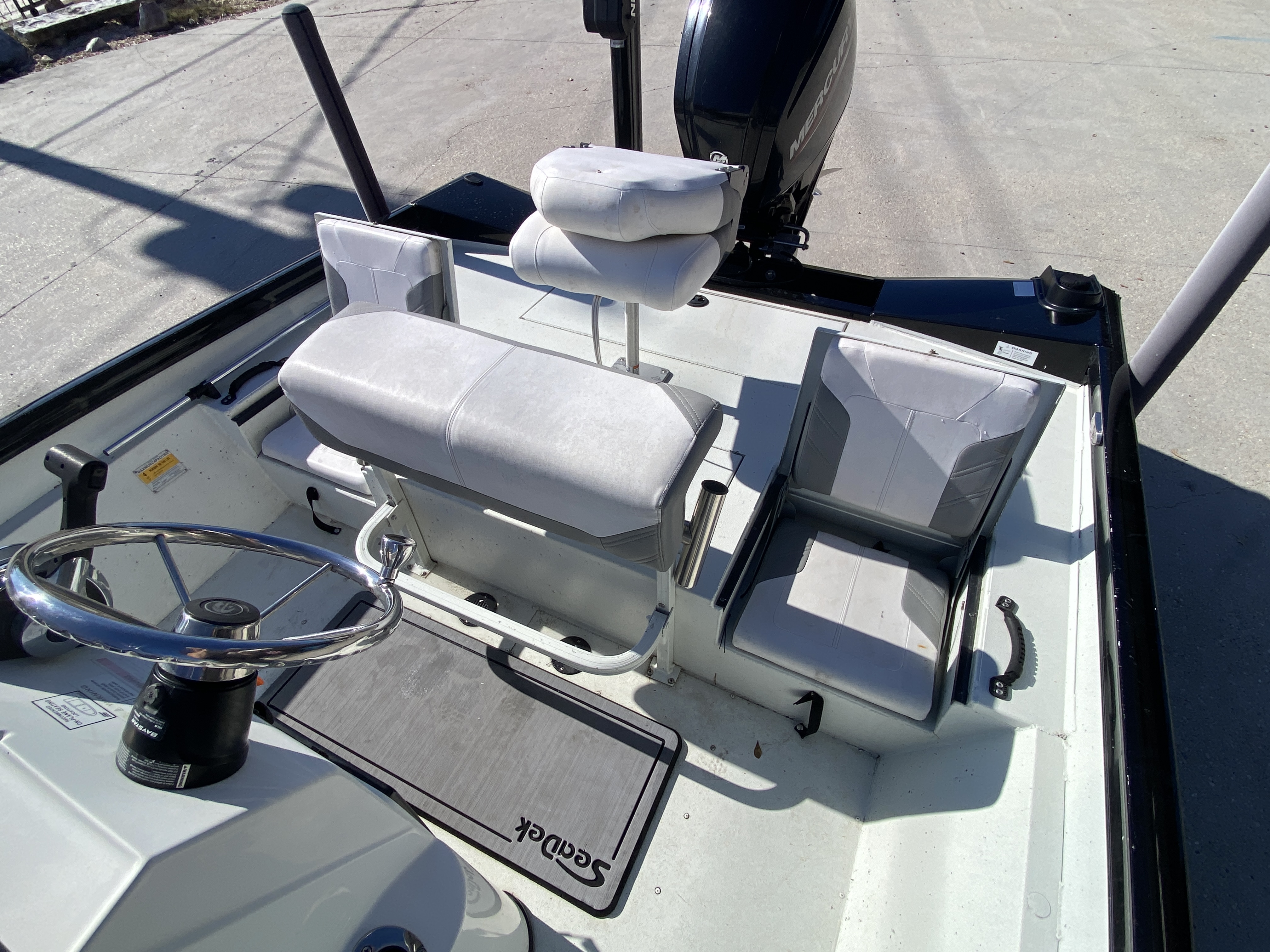 The 1800 Bay comes standard with a 21-gallon stern livewell with timer and a bow deck with plenty of casting space and ample storage underneath. With seating that includes stern jump seats and a forward facing console seats, you’ll have plenty of room to bring up to three other friends. When you take the 1800 Bay out on the water, you’ll realize that this center console boat has everything you need to own the day, wrapped up in an efficient, agile package.