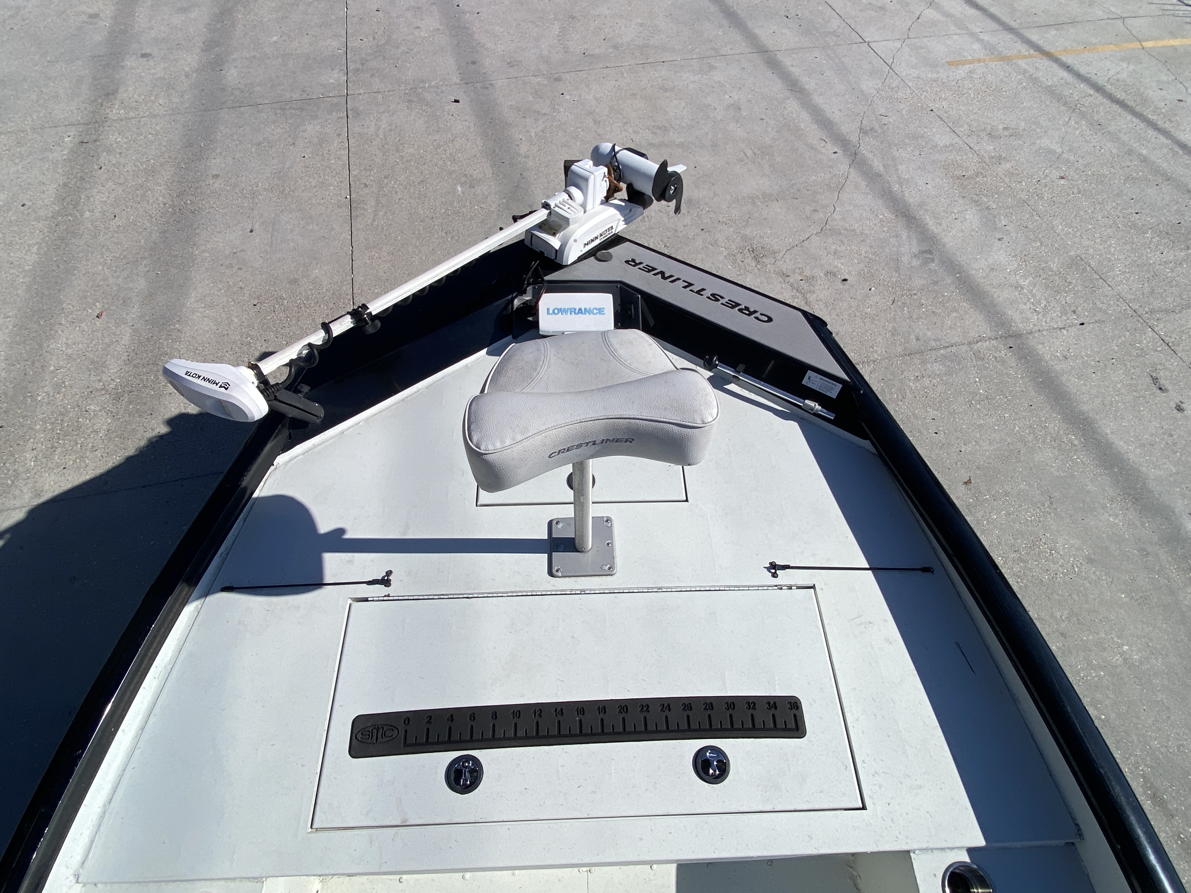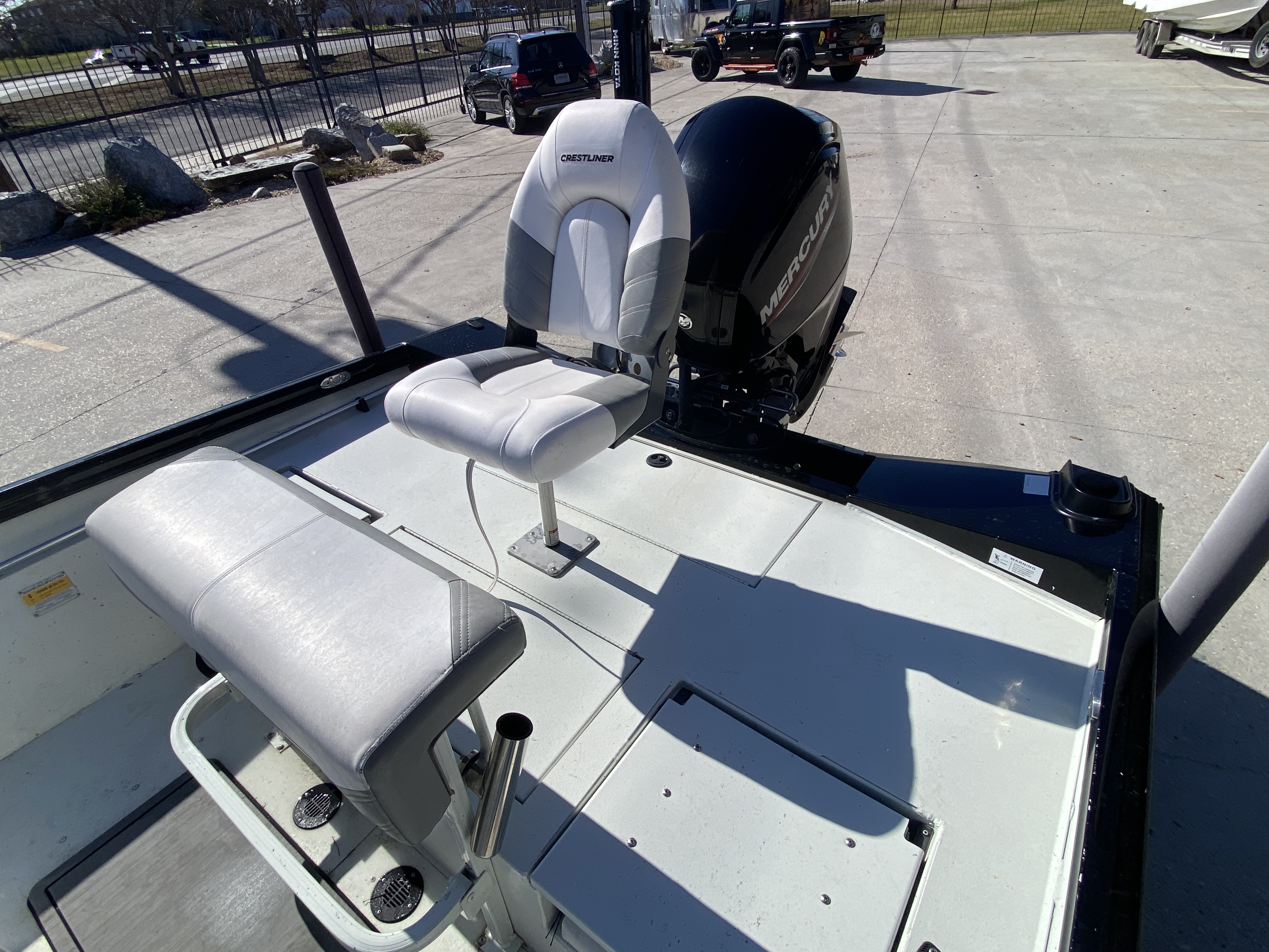 The Crestliner 1800 Bay combines the best of our bay boat features while maximizing space and storage. It also comes standard with a Mercury engine and a high horsepower rating so you can get to your next fishing spot with speed and control. The 1800 Bay’s center console design puts you at the helm of a wide, stable hull that is built to take on any water with confidence. This 18-foot aluminum bay boat is imbued with the all-welded strength that Crestliner is known for. And with the fiberglass center console that includes an instrument panel and storage for 6 rods, that performance is consistent from top to bottom.