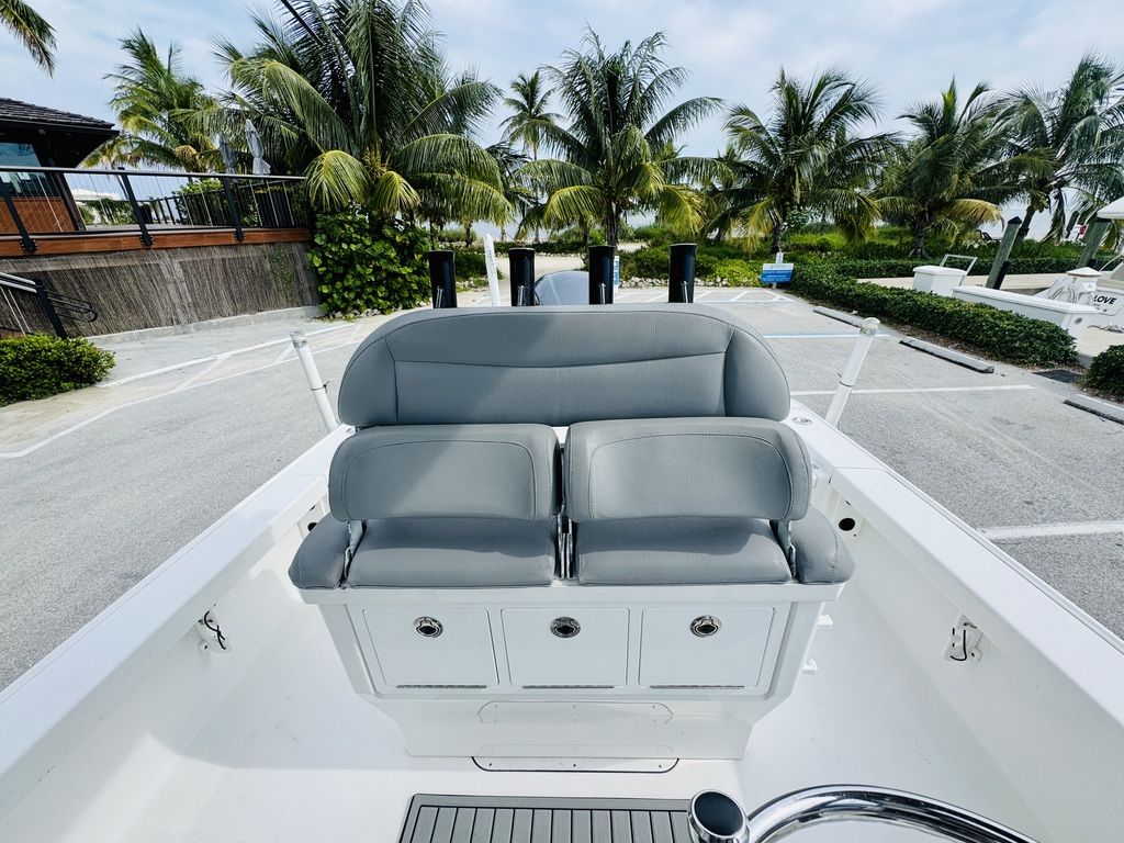 The 2019 Crevalle 24 Bay blends hardcore fishability with family comfort, making it one of the most versatile bay boats on the water. This 24-footer is loaded with features for serious anglers, including dual 28-gallon livewells, lockable rod storage, and a leaning post with tackle drawers. At the same time, families will appreciate the forward and aft seating, convertible bow casting area, and high-quality upholstery throughout.