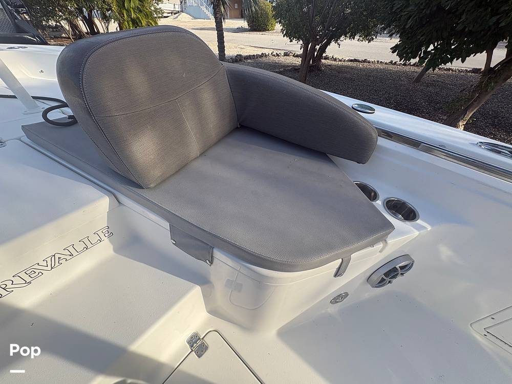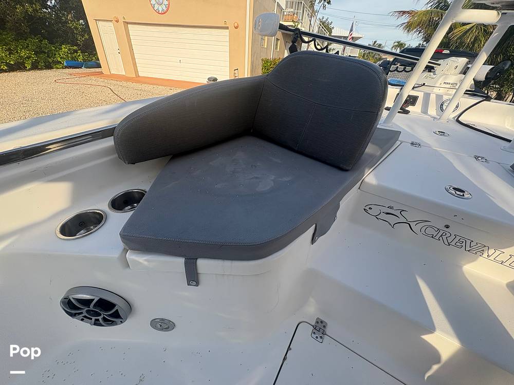 This 24' Bay boat features a 2019 Yamaha 300 HP four-stroke engine. With a draft of 12 inches when raised, it serves as both a family boat and an excellent fishing platform, equipped with a full upper station for enhanced sight casting from an elevated position.