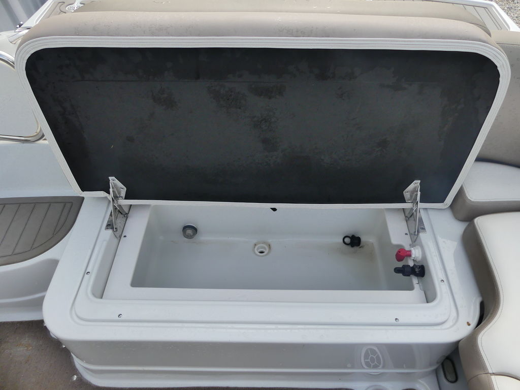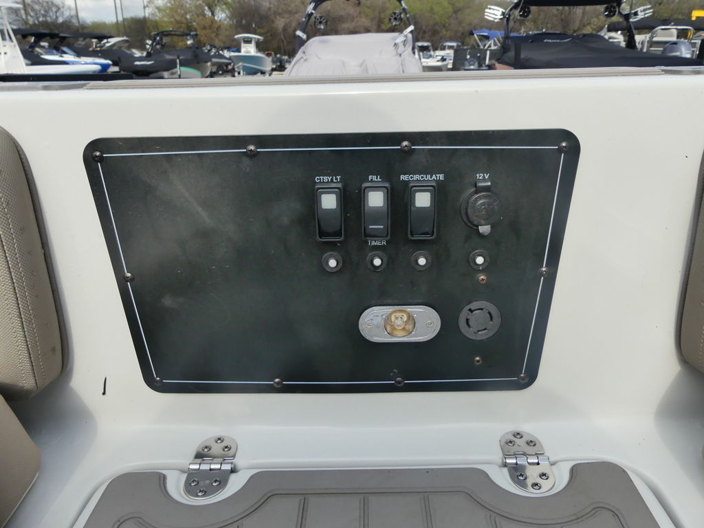 Fish Upgrade Package - aerated bait box and live well, 2 casting chairs, Raymarine A67, 3-bank battery charger for trolling motor batteries, and trolling motor mount and control panel with all cables and wiring. 2019 Crownline E 205 XS