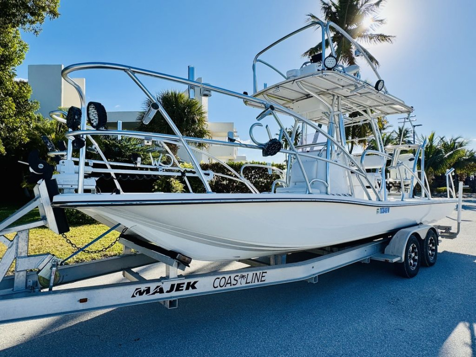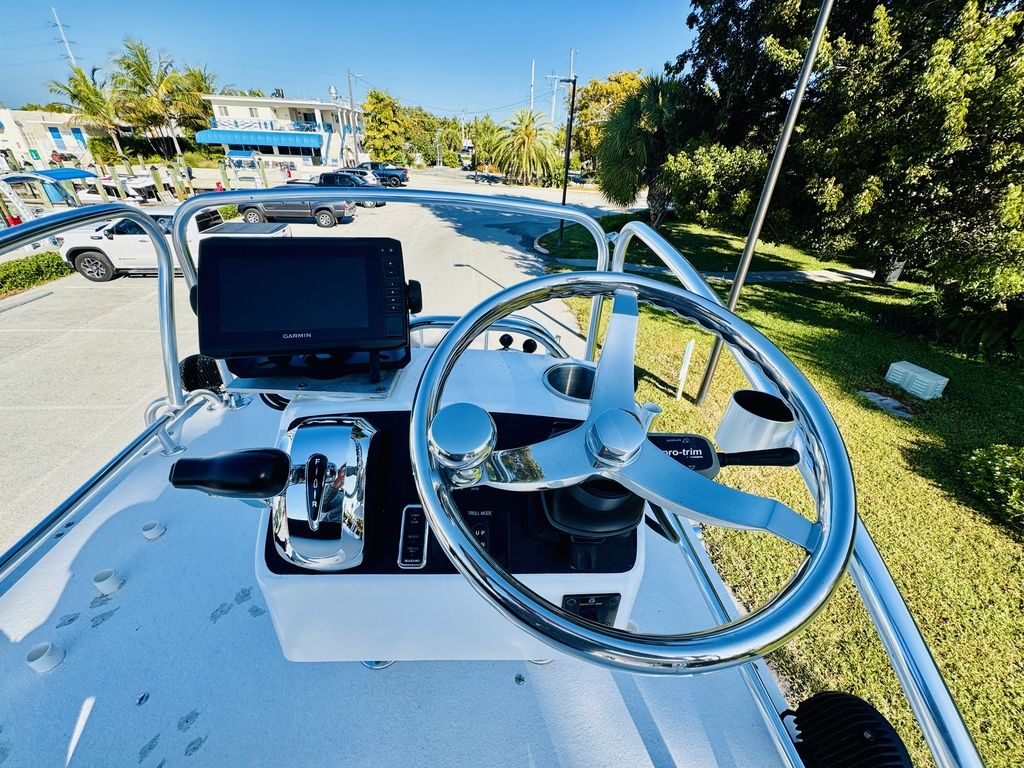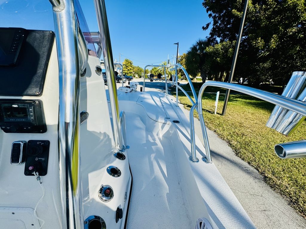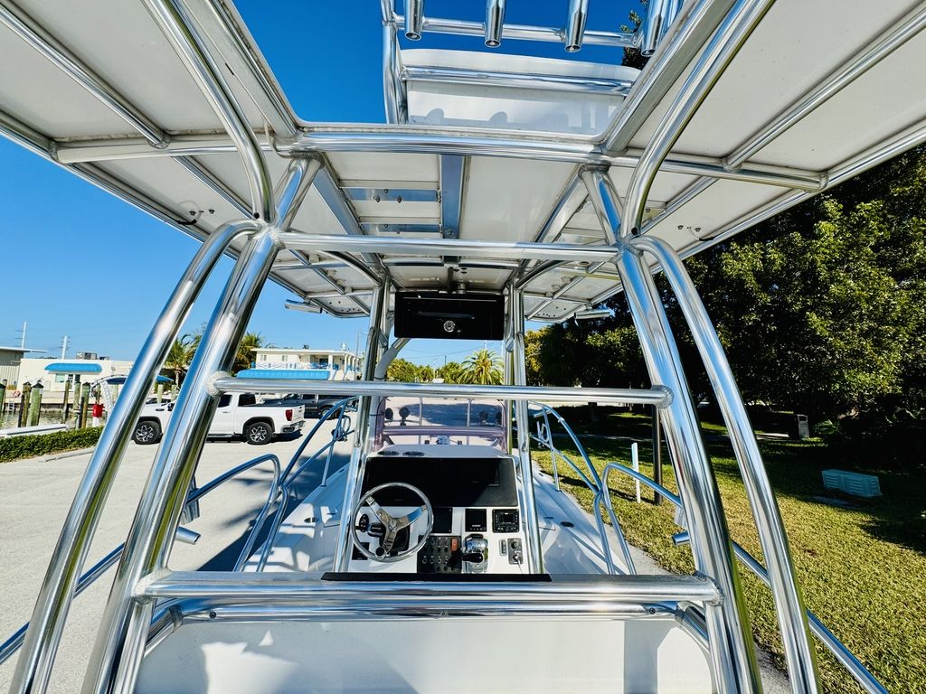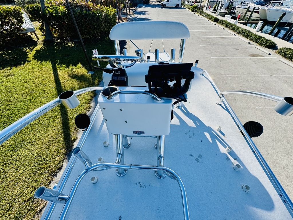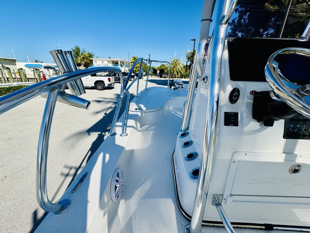 At roughly 26 feet in length with a wide beam for added stability, the hull is designed to provide a soft, dry ride in open water while still maintaining a draft shallow enough for inshore versatility. Epic’s vacuum-infused construction, premium gelcoat finish, and high-quality hardware throughout reflect a commitment to durability, longevity, and real-world performance. Whether you’re sight-casting from the bow, running the helm, or relaxing aft, this layout adapts effortlessly to your day on the water.