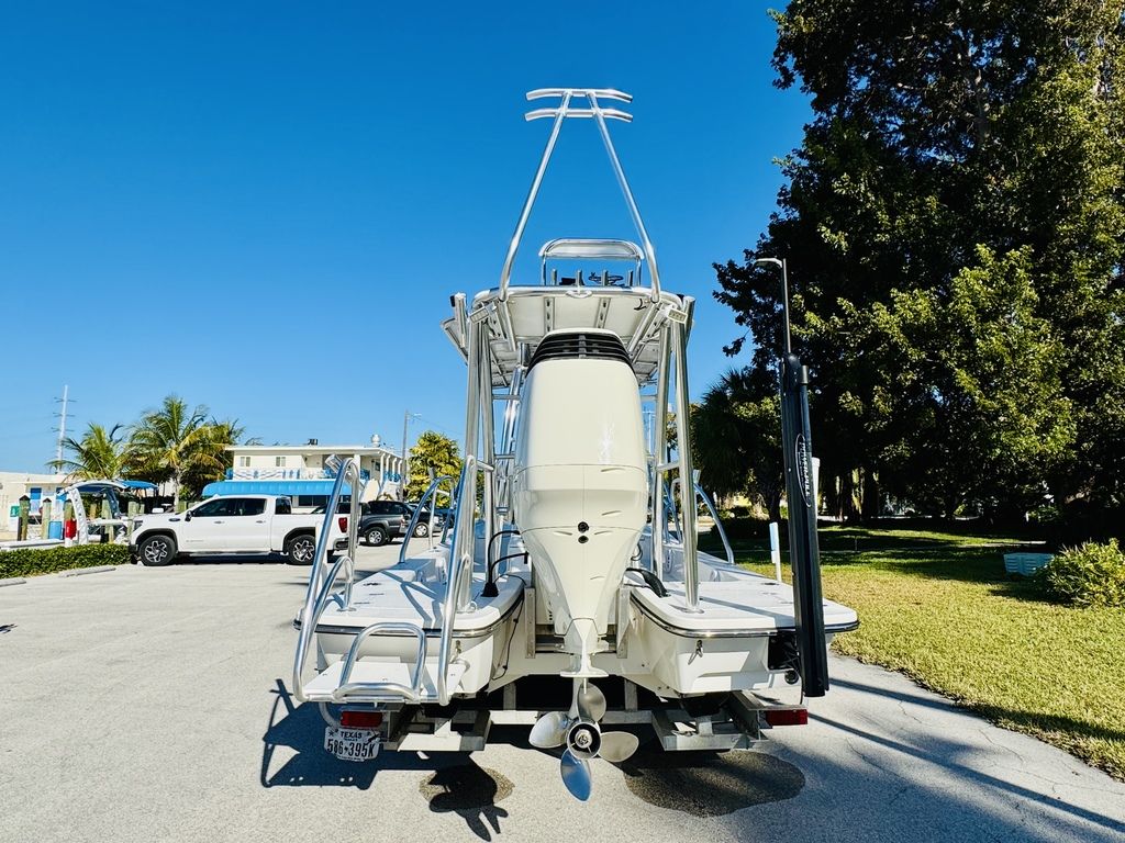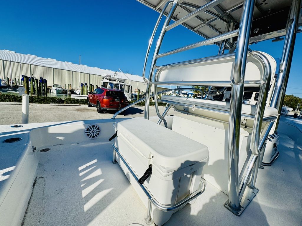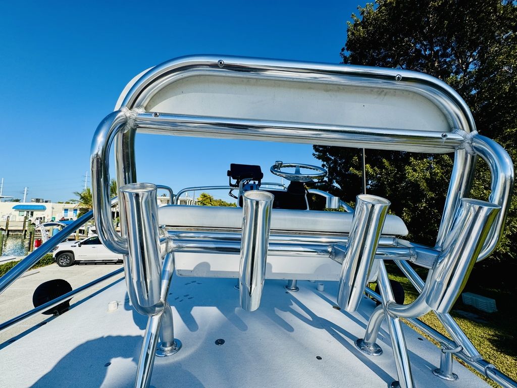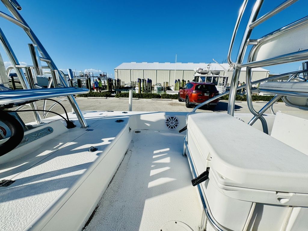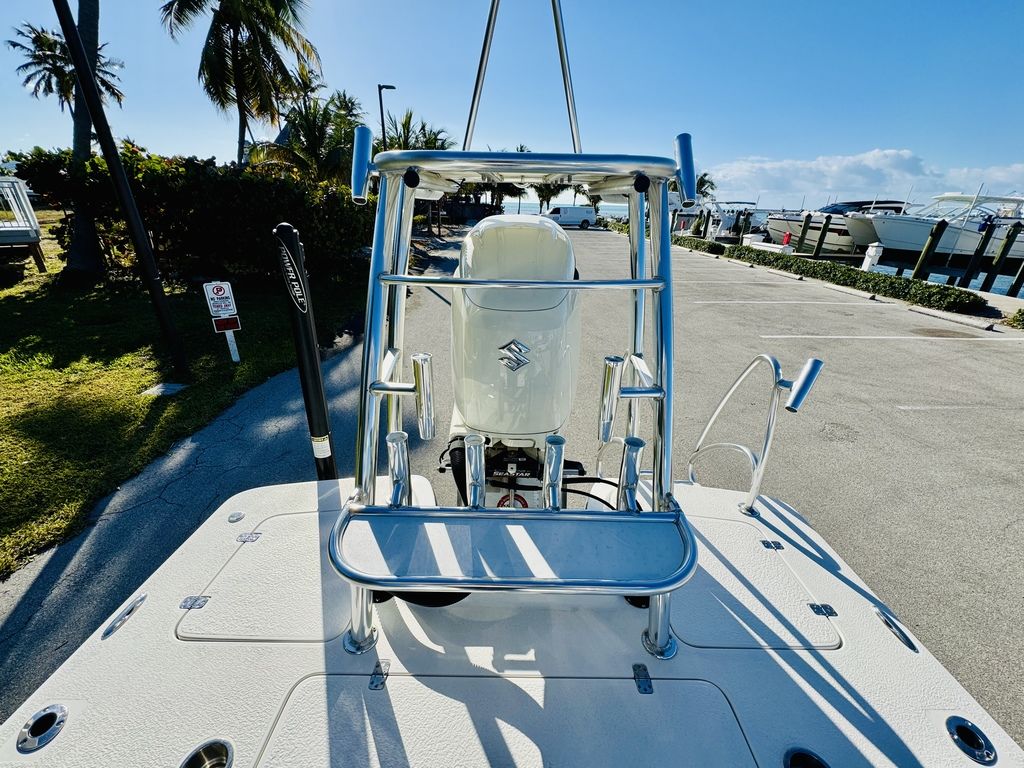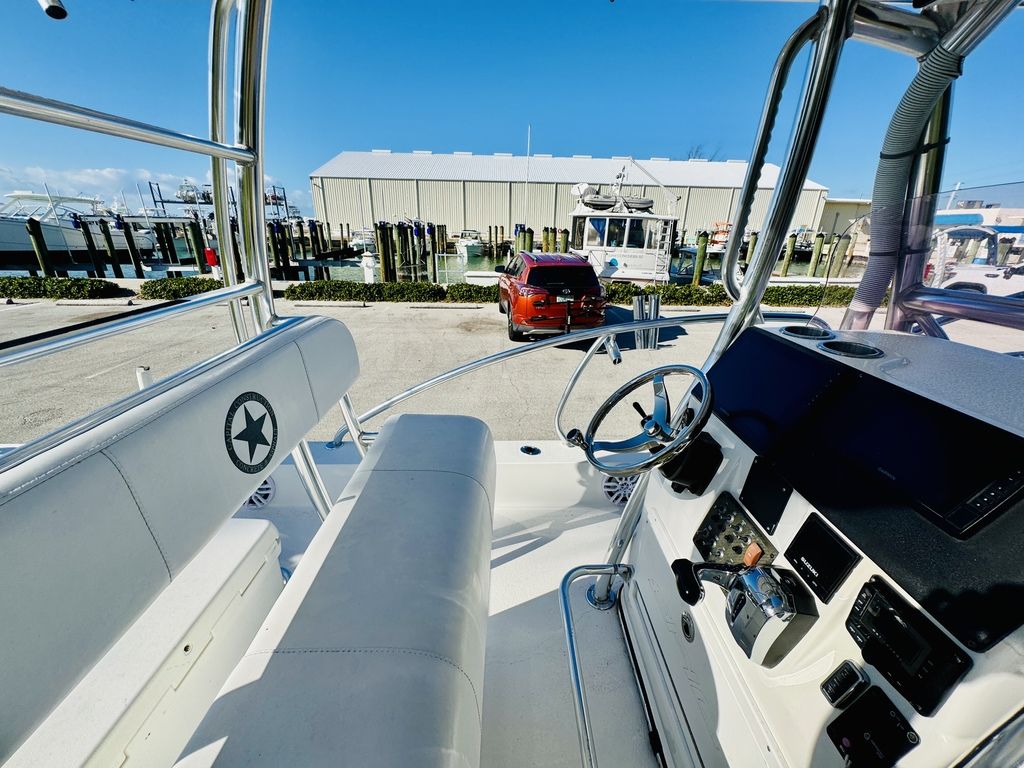 At roughly 26 feet in length with a wide beam for added stability, the hull is designed to provide a soft, dry ride in open water while still maintaining a draft shallow enough for inshore versatility. Epic’s vacuum-infused construction, premium gelcoat finish, and high-quality hardware throughout reflect a commitment to durability, longevity, and real-world performance. Whether you’re sight-casting from the bow, running the helm, or relaxing aft, this layout adapts effortlessly to your day on the water.