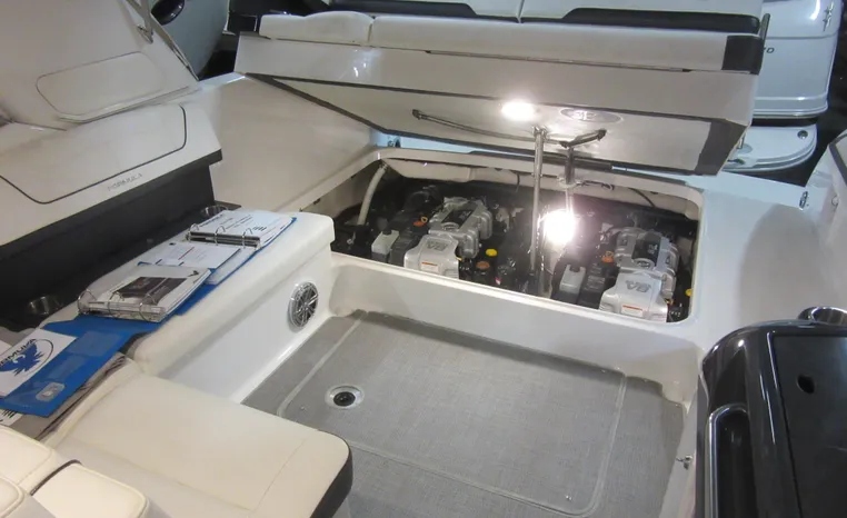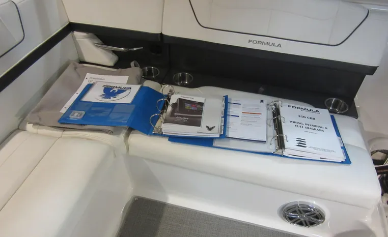 See this Gorgeous fresh-water Formula 350 CBR with just 140 engine hours! Recent price reduction. Ready to go boating now. The 350 CBR offers an ideal combination of luxurious cockpit seating, useable convenience cabin, abundant storage areas and the legendary performance, quality and attention to detail that Formula is known for. Don't miss our video! Photos shown here include outdoor shots prior to lay-up, engine room and cockpit photos as stored now and two beautiful in-factory shots as the boat was completed. This 350 CBR includes these original factory specifications: