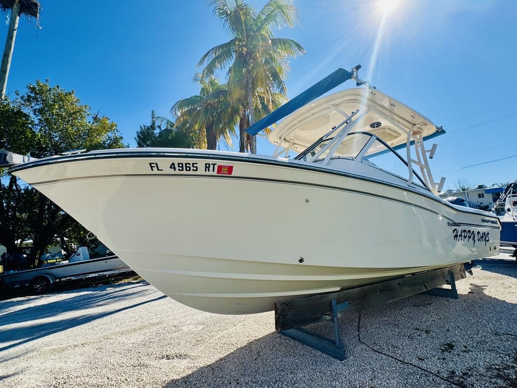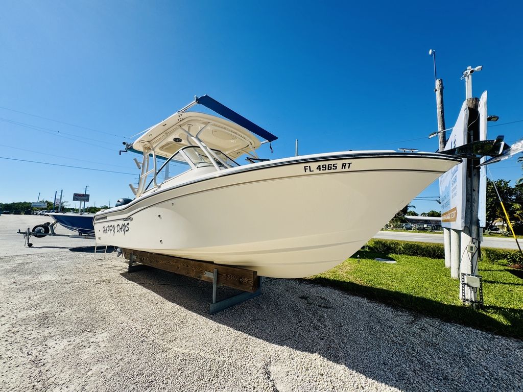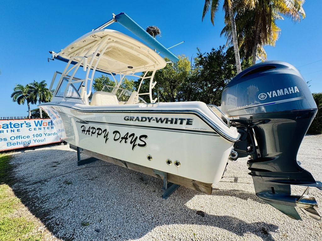 This 2019 Grady-White 255 Freedom is a well-maintained, used dual-console cruiser that seamlessly blends family comfort with serious saltwater capability. Powered by twin Yamaha 150 HP four-stroke outboards, each with approximately 180 hours, it delivers smooth, dependable performance, responsive handling, and efficiency whether you’re cruising nearshore or venturing further offshore. With a hull length of 24'9? and a beam of 8'6?, the 255 Freedom is spacious enough for extended outings with friends or family, while still remaining easy to trailer and maneuver. Built on Grady-White’s legendary SeaV²® hull, this boat provides a stable, dry, and efficient ride across a wide range of sea conditions, from calm bays to moderate offshore chop.