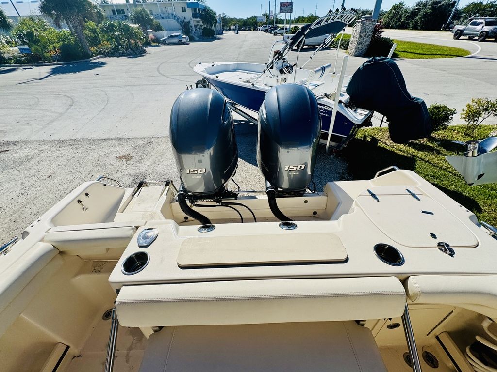 -twin Yamaha 150 HP four-stroke outboards with approximately 180 hours each provide reliable power, smooth acceleration, and excellent fuel efficiency.