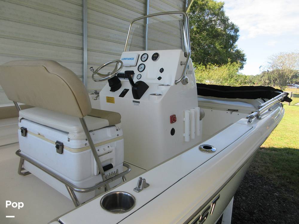 Cushions in the bow area and rear seating at the stern of the boat with a swim ladder. Rod holders and rod storage on the sides and live bait well. A Lowrance GPS, a compass and an anchor in an anchor locker bin. A power pole for easy anchoring. This Key West 189 FS is stored under cover and is ready to go!
