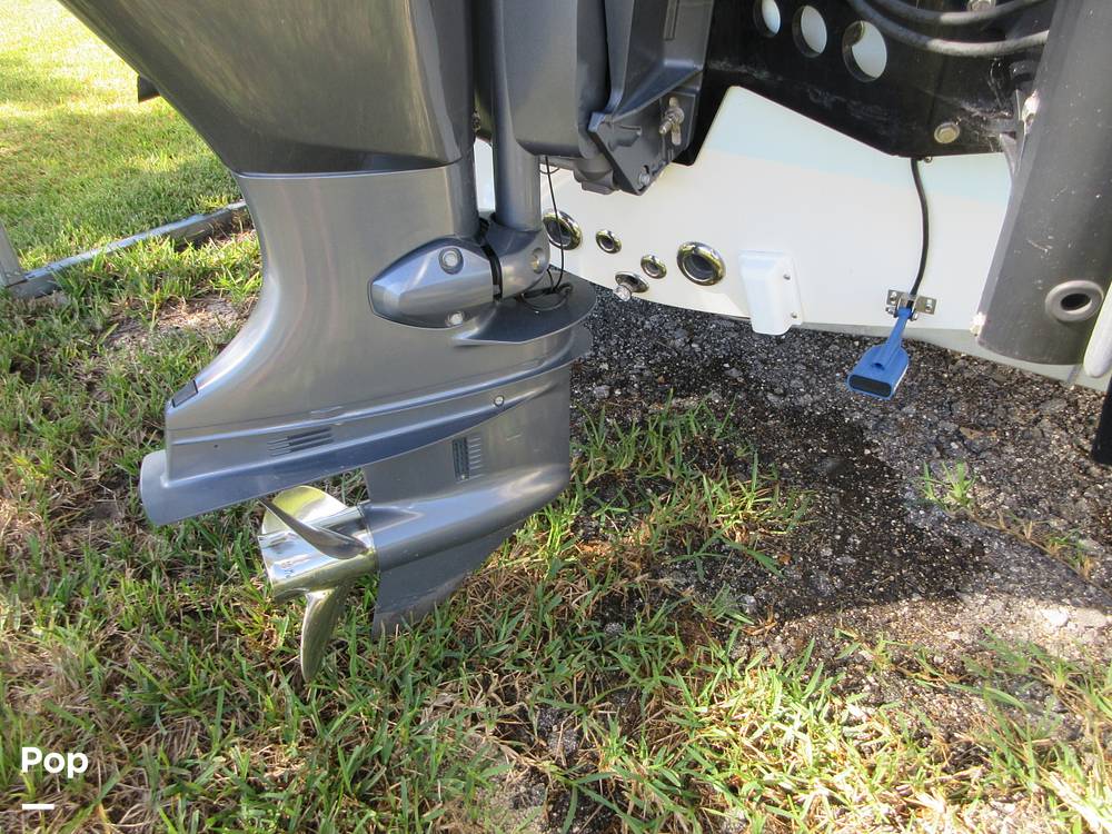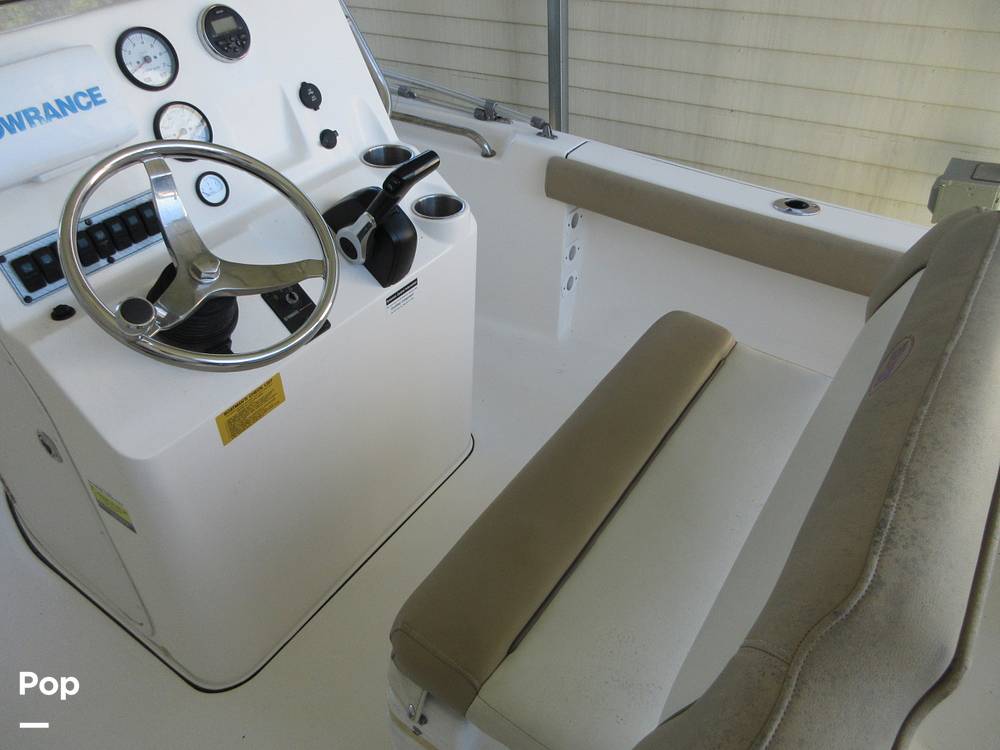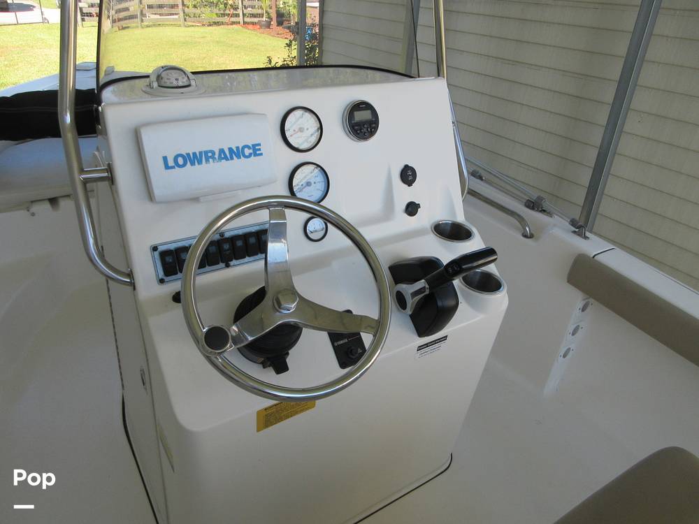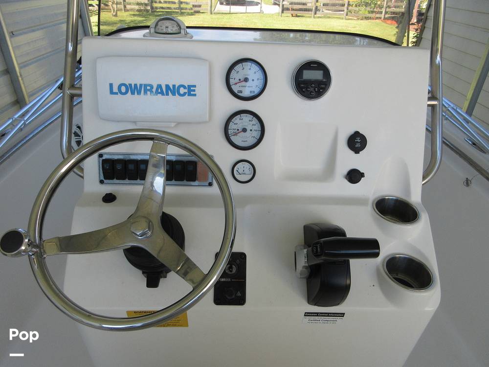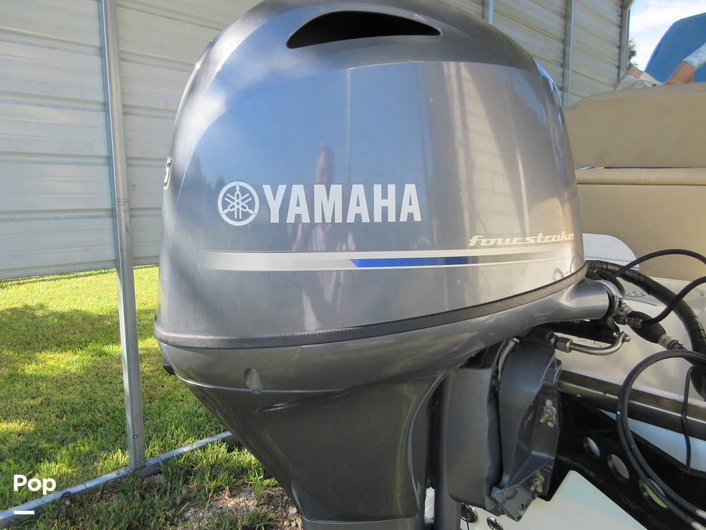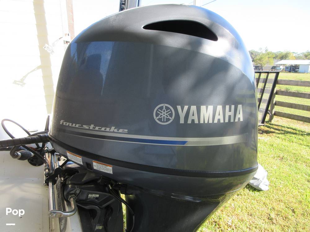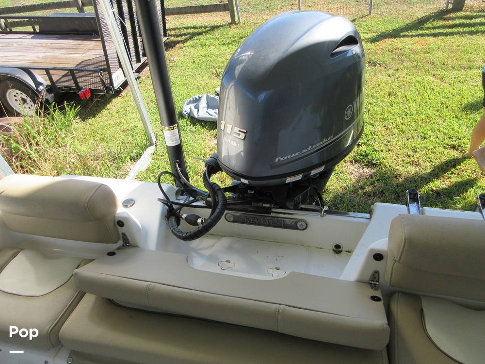 This 2019 Key West 189 FS center console is powered by a Yamaha 115 four-stroke engine. The boat is designed with an enclosed compartment under the front center console for a porta-potty. The captain's chair has a cooler under it with a leaning post. Windscreen over the cockpit panel and a newer bimini top.