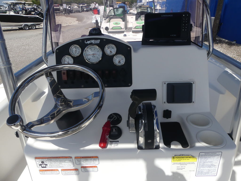 The compact yet deadly MAKO® 184 CC is built tough for fishing and fun, whether you're chasing offshore game or just cruising the islands with the family. Anglers will appreciate the under-gunnel rod storage and the 21-gal. baitwell. And families will love the cushioned forward-console seat and the molded-in swim platforms.