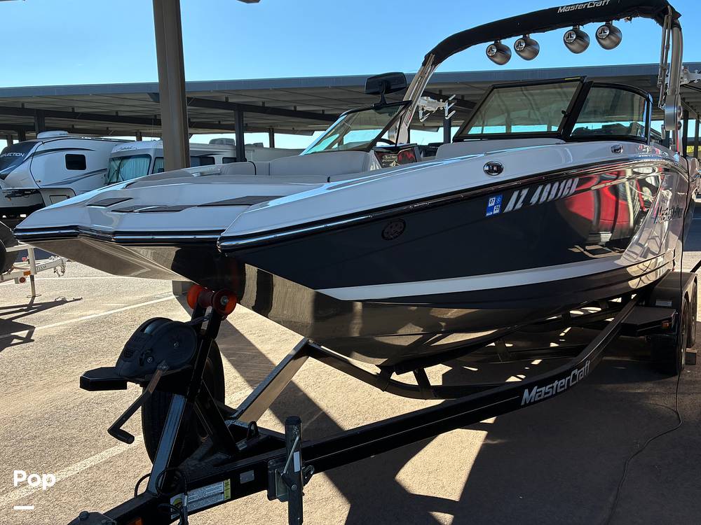 Top Features Include Factory MasterCraft Wakeboard Tower with Board Racks and Tower Speakers - Ideal for wakeboarding and surfing, with integrated speakers for on-the-water sound.