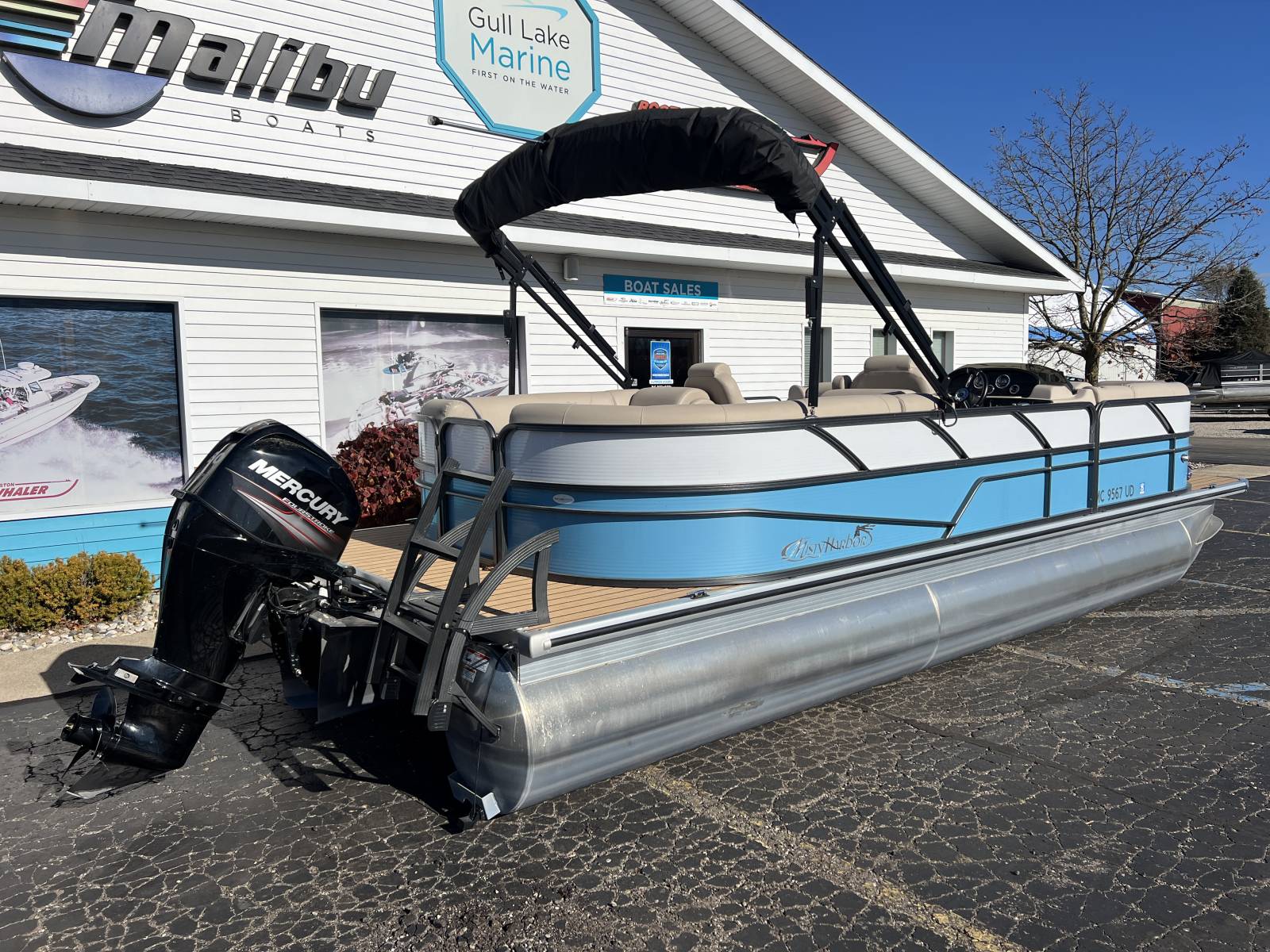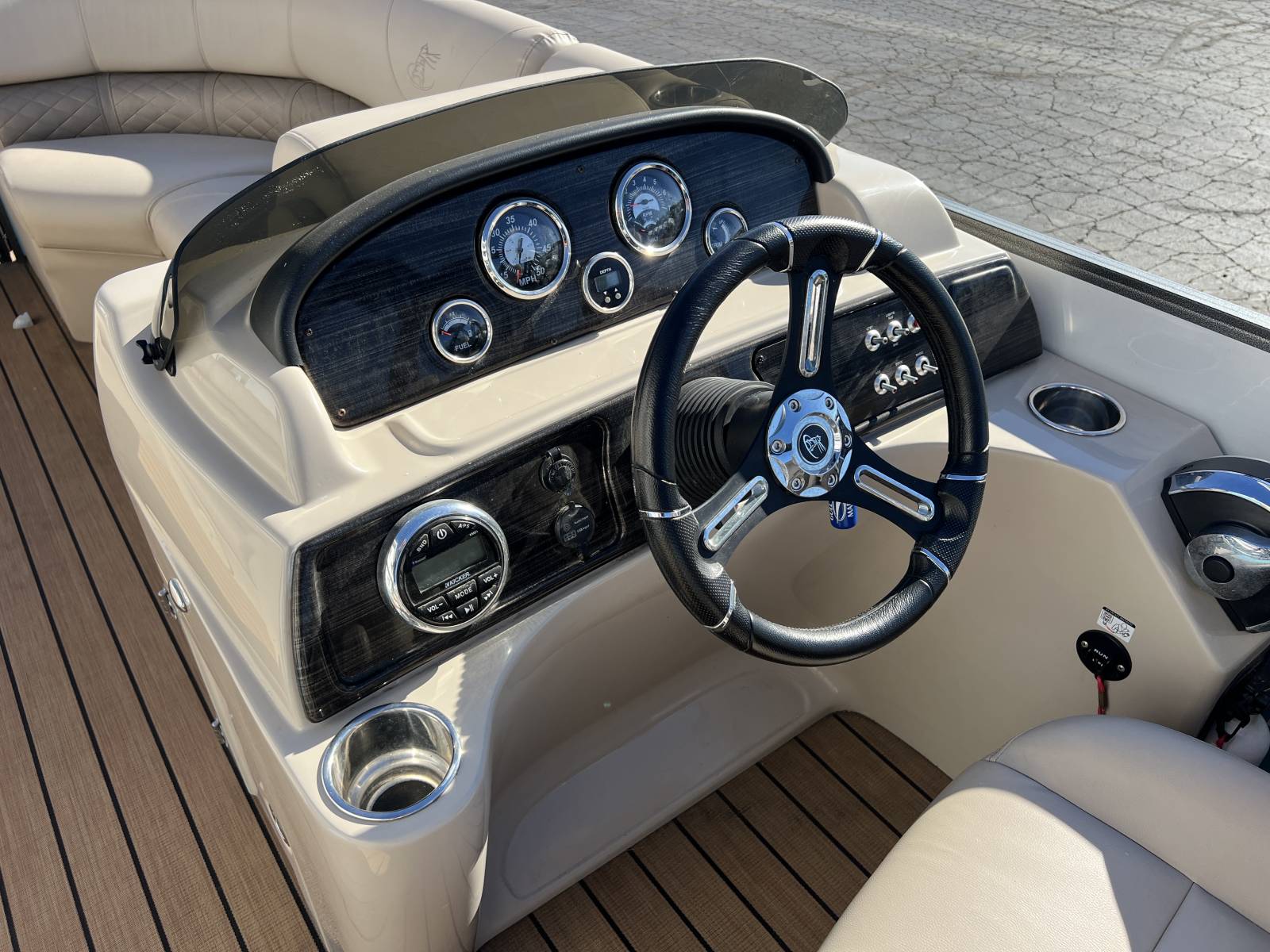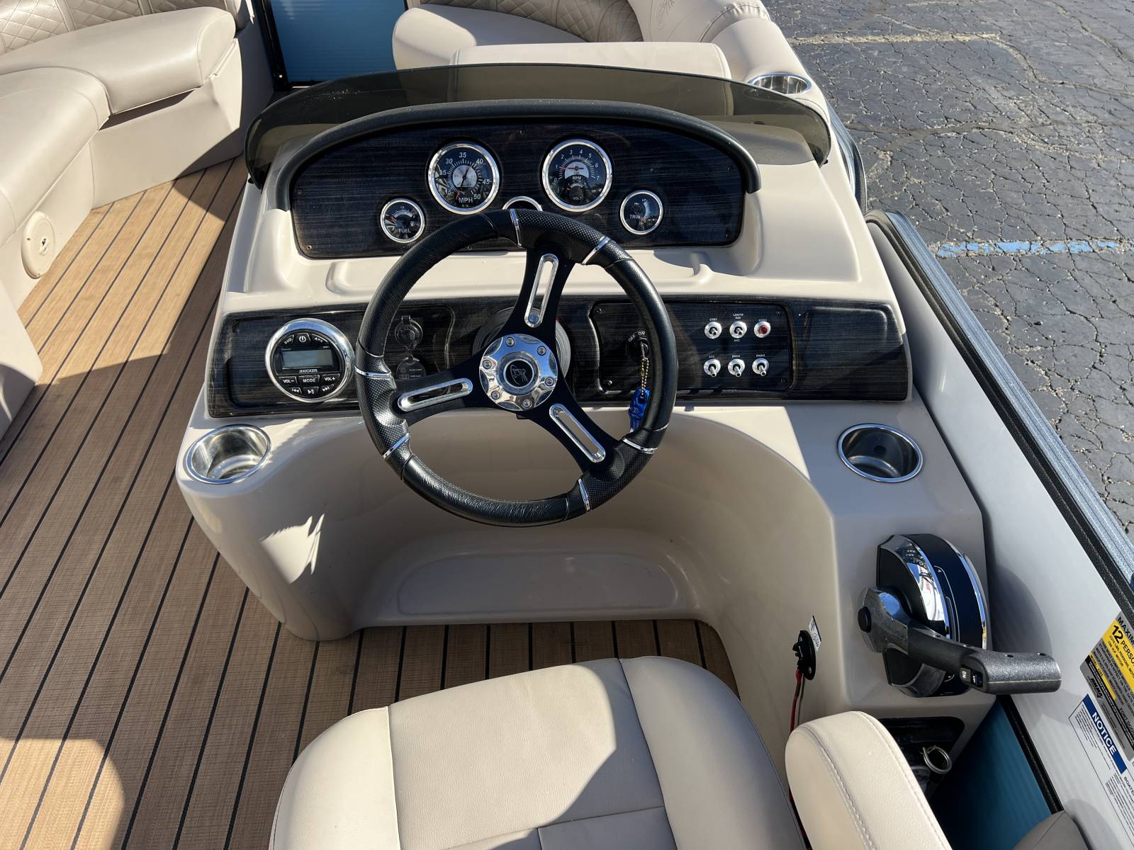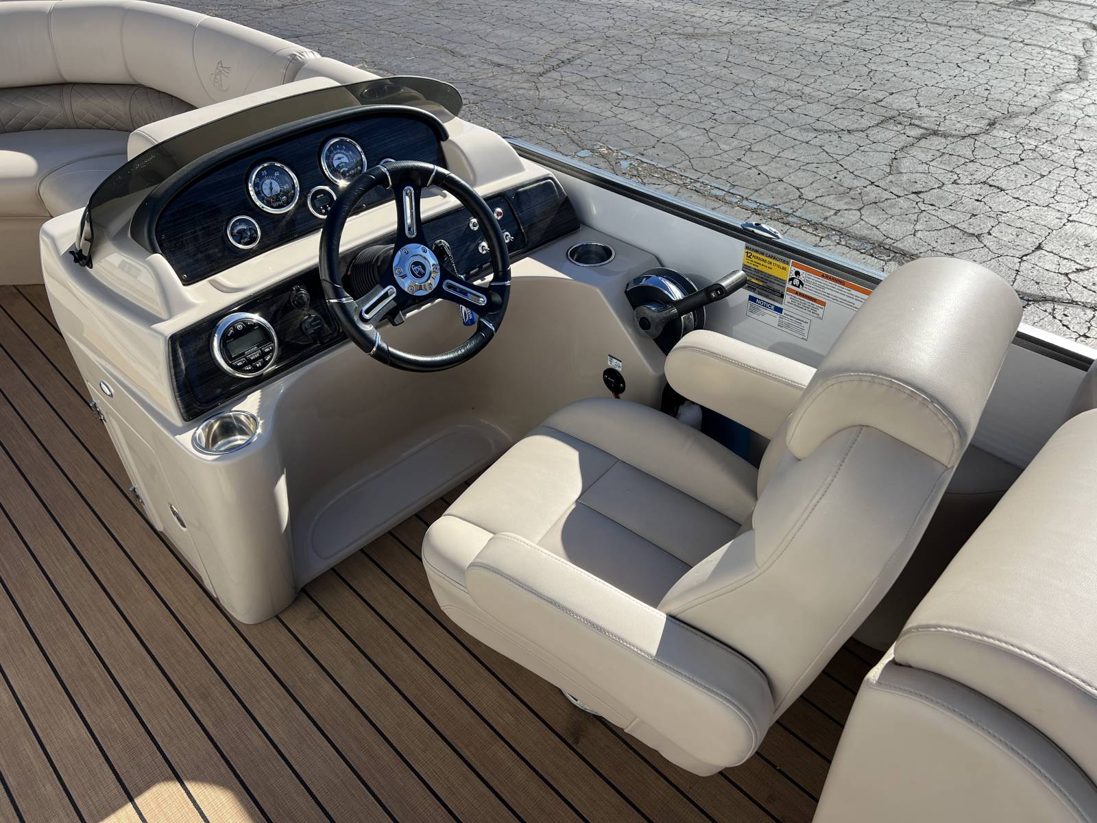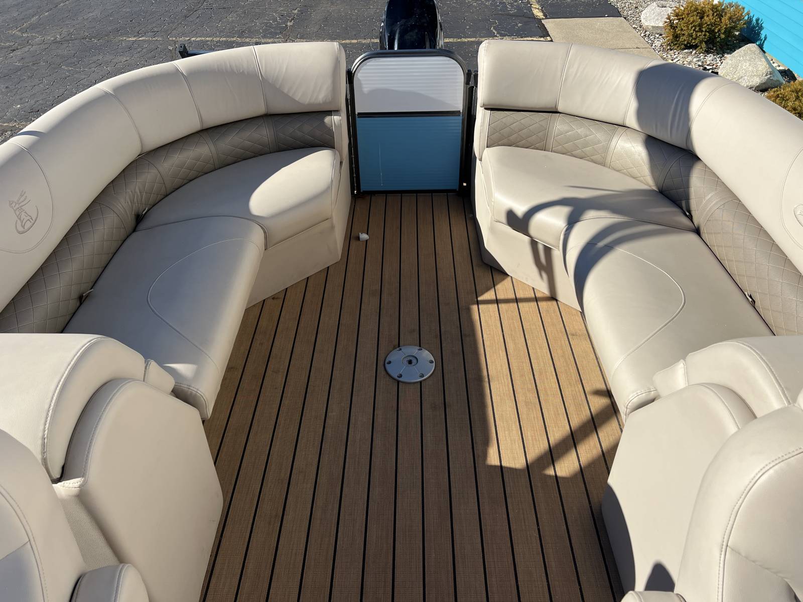Clean, one owner local trade in that has been dealer serviced. Only 81 engine hours.Highlights:Teak seagrass flooringCenter walkthrough w/ dual captains chairsDocking lightsAluminum fold down swim ladderMercury 60HP EFI four stroke engineHammered powder coated railingSS cup holders & bimini fittingsBluetooth Kicker stereoTilt steering wheelFull mooring coverCall Gull Lake Marine today for more information.Thanks for viewing!