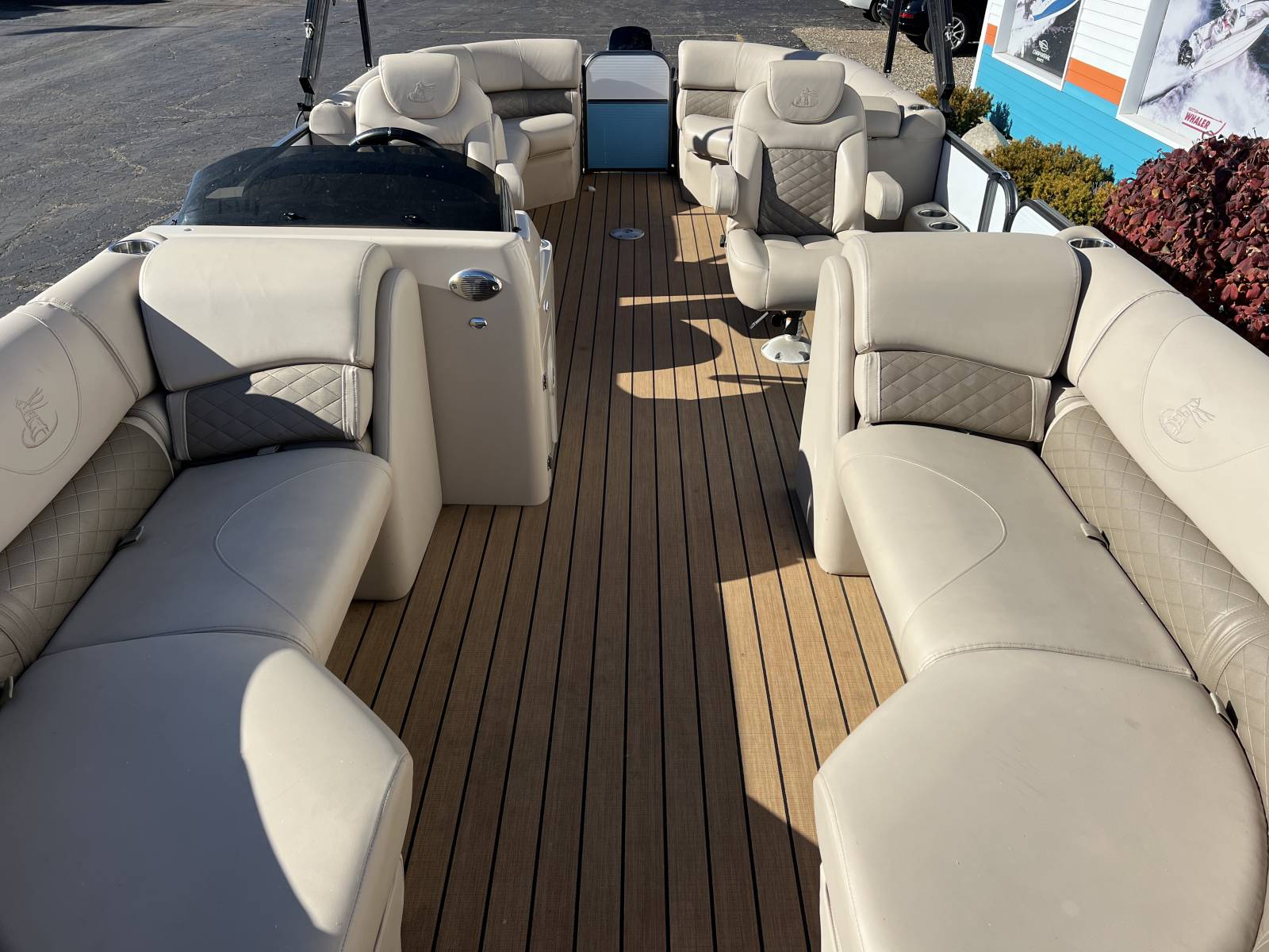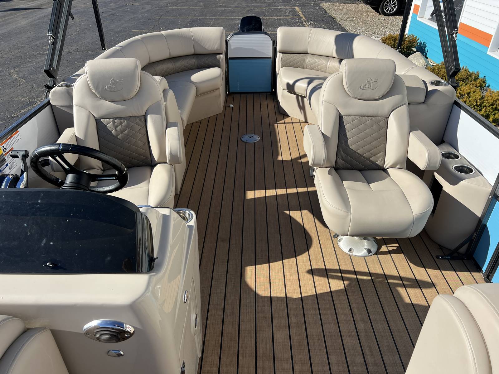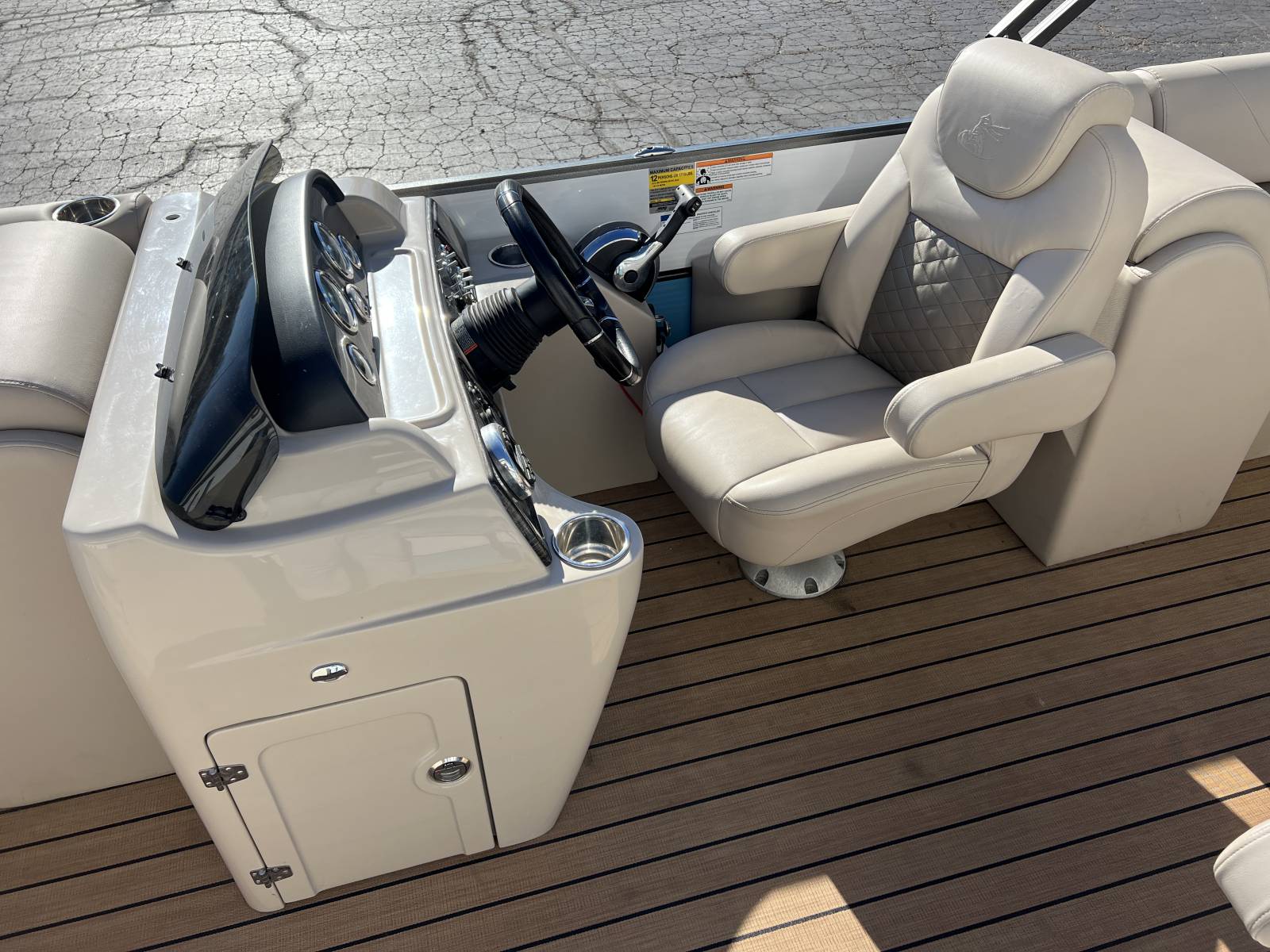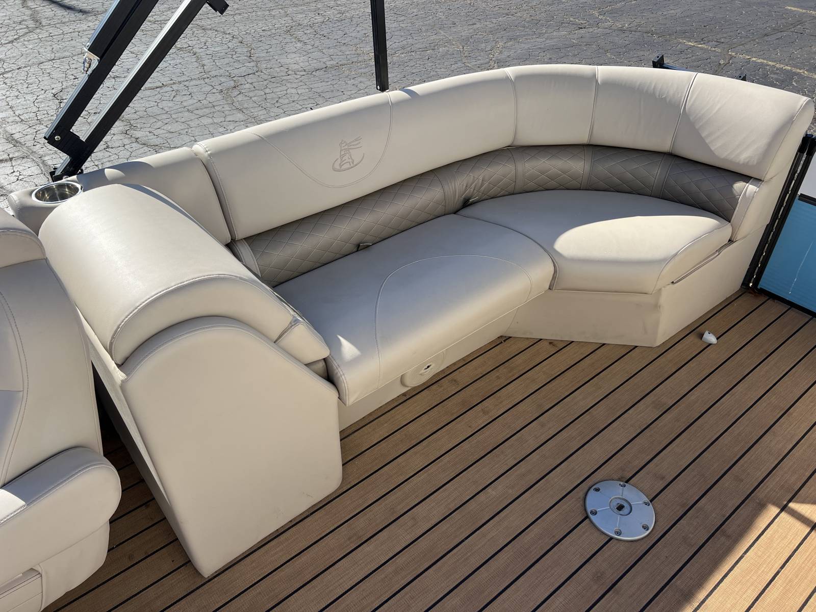 Clean, one owner local trade in that has been dealer serviced. Only 81 engine hours.Highlights:Teak seagrass flooringCenter walkthrough w/ dual captains chairsDocking lightsAluminum fold down swim ladderMercury 60HP EFI four stroke engineHammered powder coated railingSS cup holders & bimini fittingsBluetooth Kicker stereoTilt steering wheelFull mooring coverCall Gull Lake Marine today for more information.Thanks for viewing!