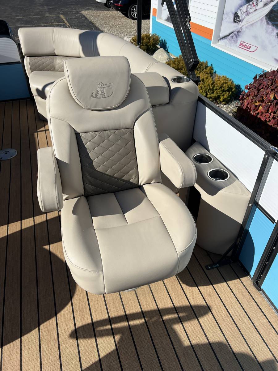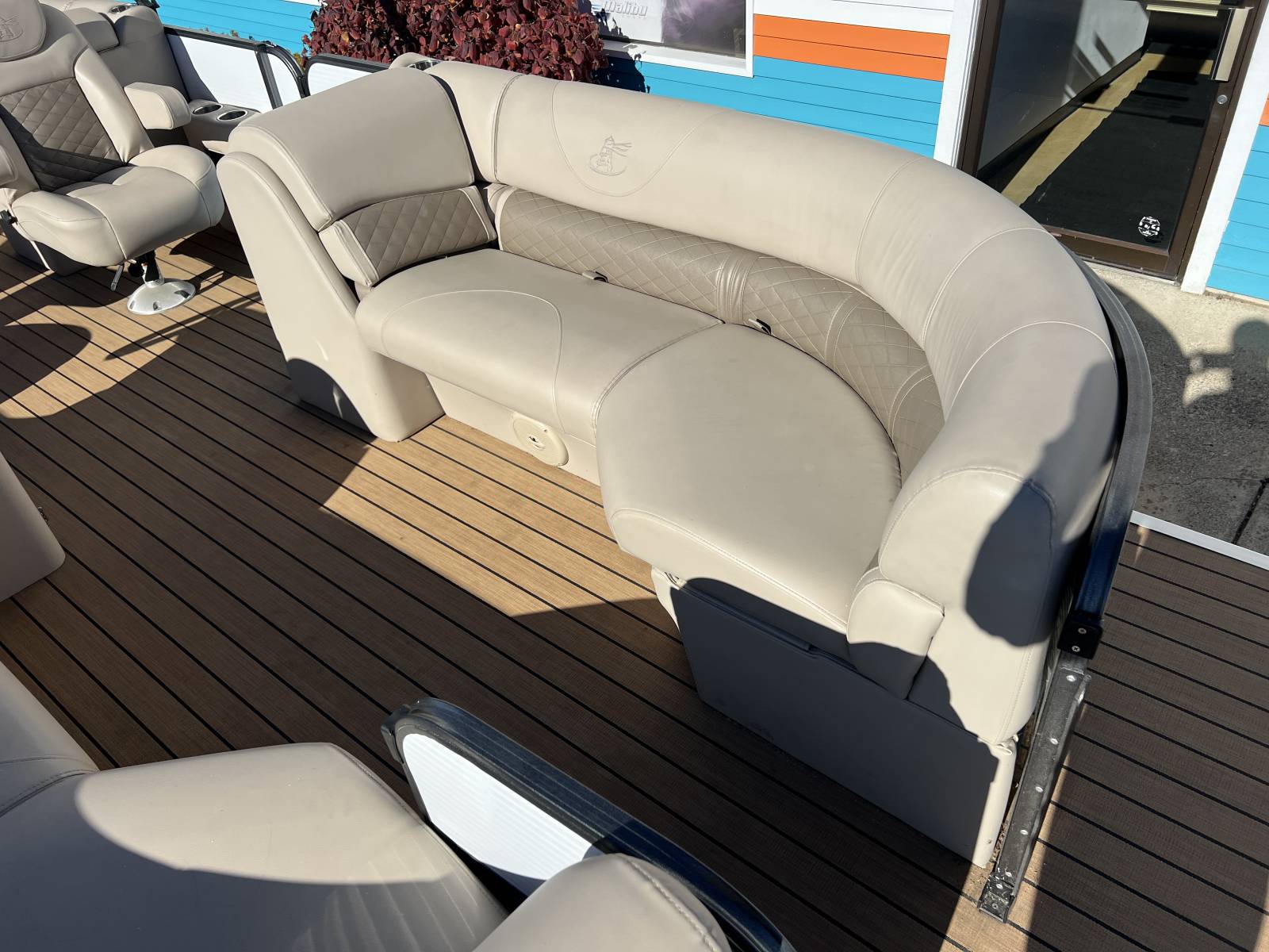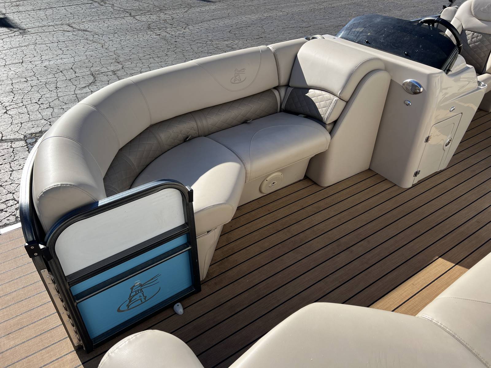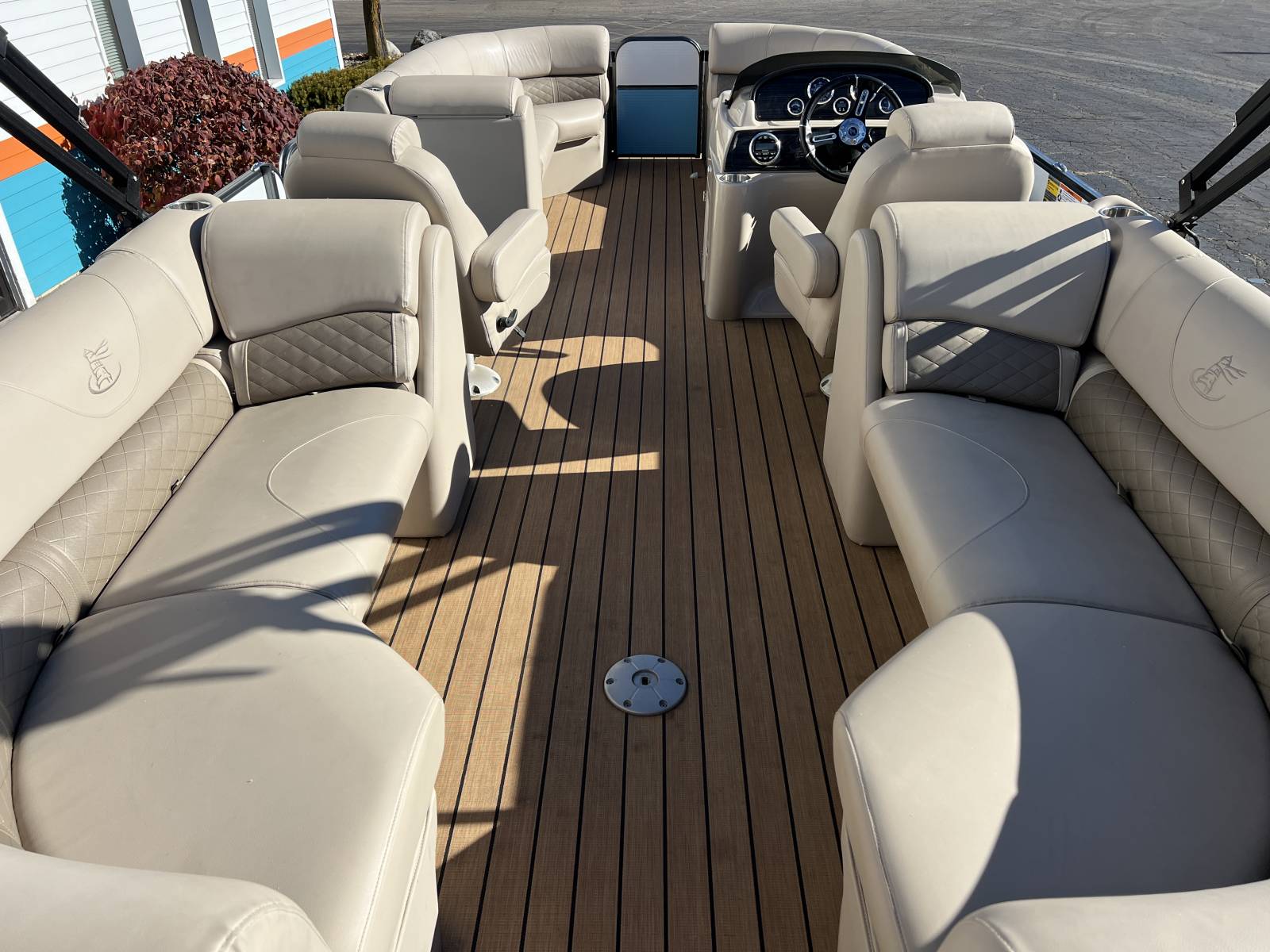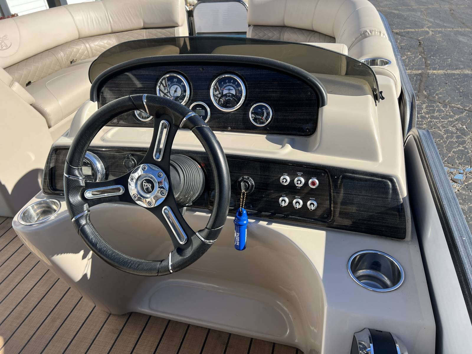 Clean, one owner local trade in that has been dealer serviced. Only 81 engine hours.Highlights:Teak seagrass flooringCenter walkthrough w/ dual captains chairsDocking lightsAluminum fold down swim ladderMercury 60HP EFI four stroke engineHammered powder coated railingSS cup holders & bimini fittingsBluetooth Kicker stereoTilt steering wheelFull mooring coverCall Gull Lake Marine today for more information.Thanks for viewing!