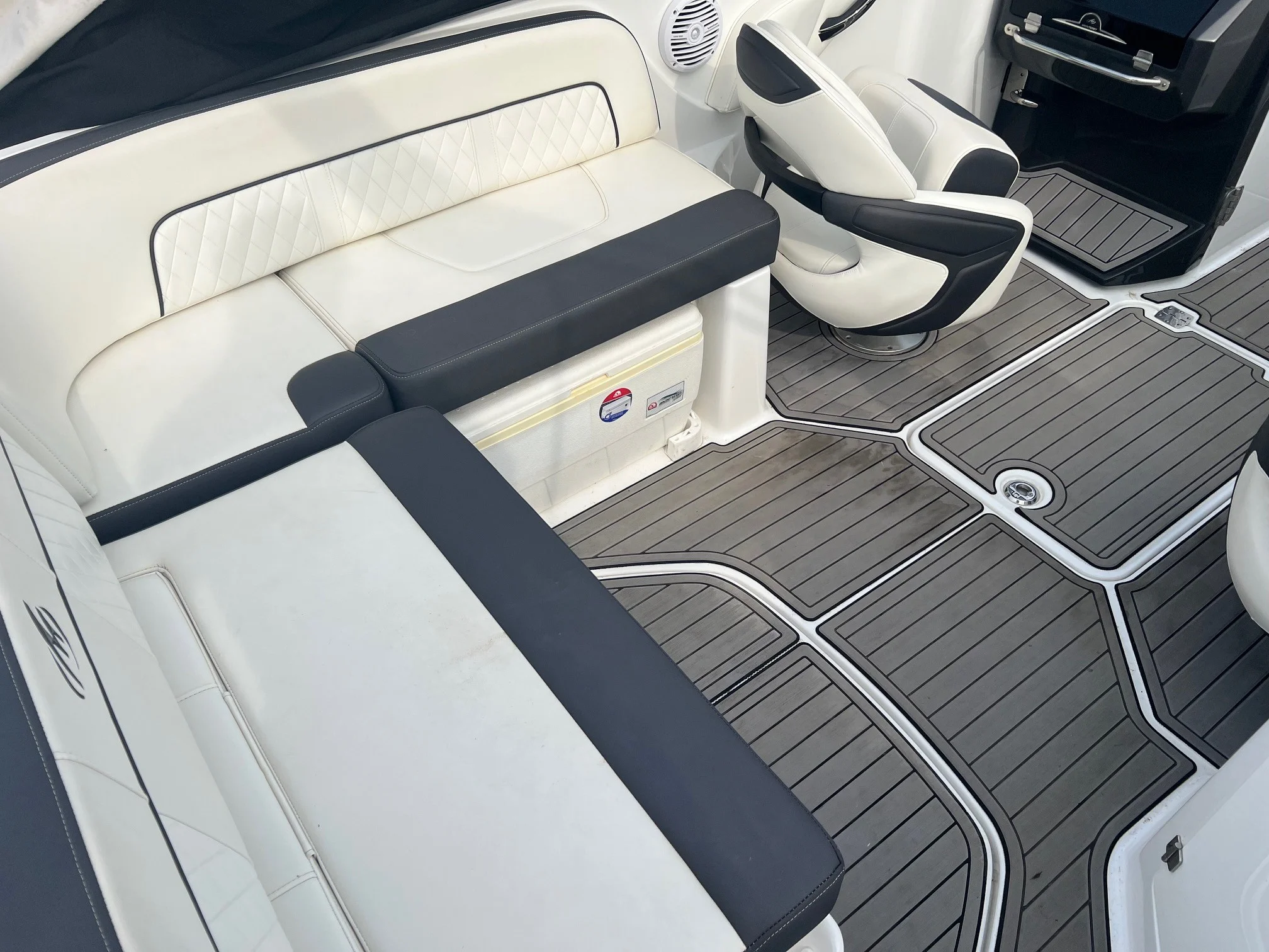 Powered by a single Mercury engine, the Monterey M45 delivers an impressive 300 horsepower, ensuring thrilling adventures as you glide across the waves. Whether you’re exploring serene coves or hosting lively gatherings, you’ll enjoy flawless handling and exhilarating speed.
