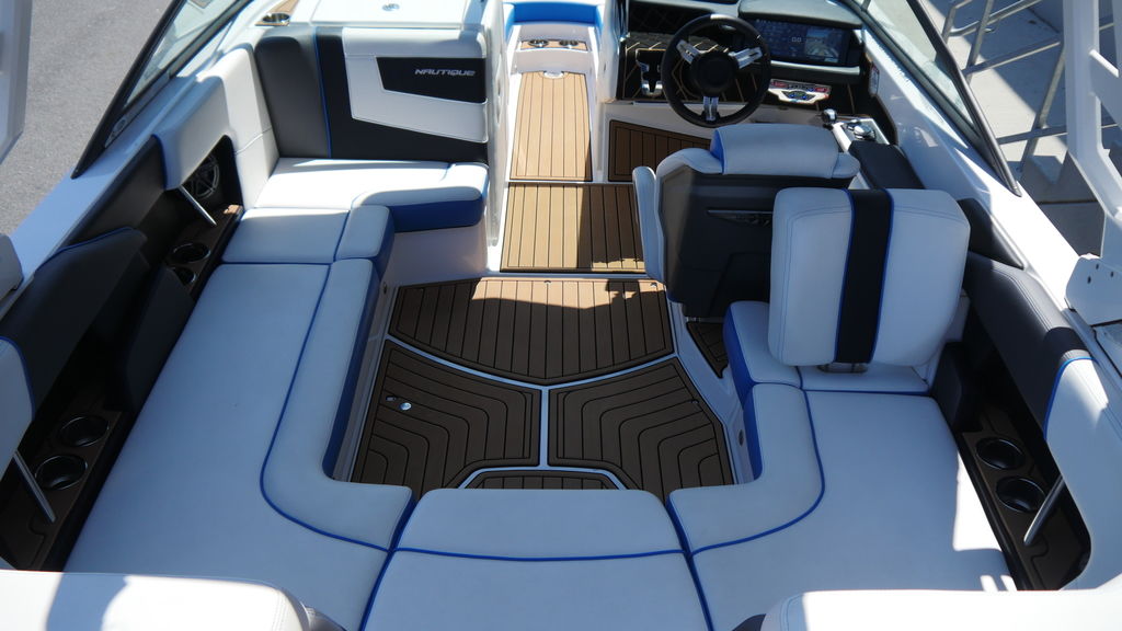 HullWith all-new gel lines for 2018, the Super Air Nautique 210 is a tried and true hull that has delivered consistent wakeboard and wakesurf performance that you have come to expect from a Nautique. With a traditional bow, the 210 incorporates iconic Nautique lines with modern-day technology to produce this well-appointed wake boat. The Nautique Surf System is integrated into the 210 hull and works seamlessly to create a fully customizable surf wave that allows you to transfer to either side in seconds with the boat evenly weighted. Our patented HydroGate™ fine-tunes your ride with the ability to adjust the boat’s running attitude on the fly.