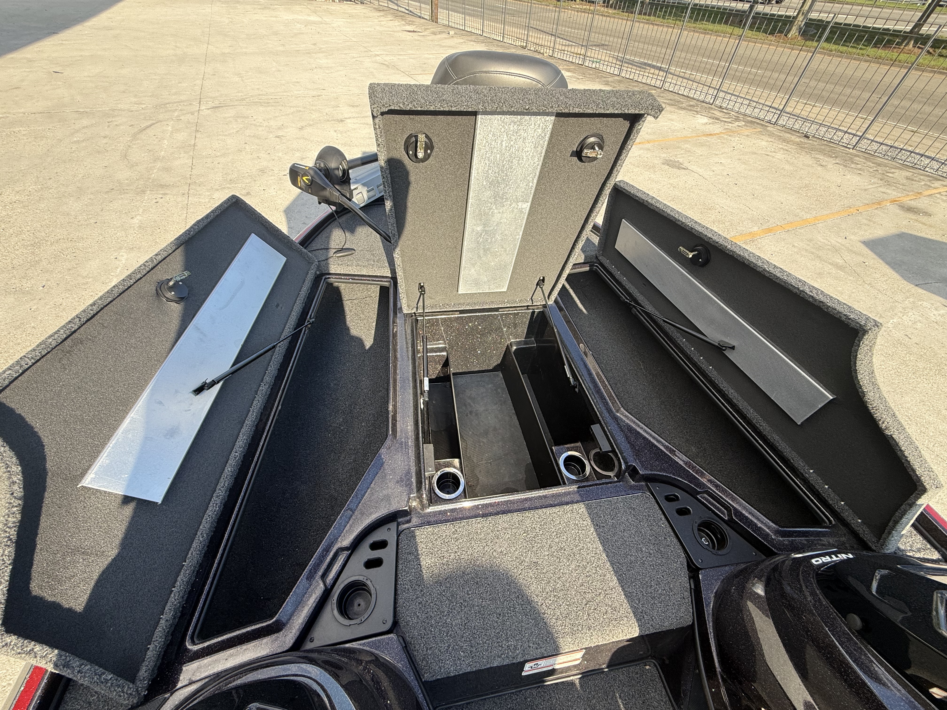 Oversized, lockable port & starboard bow rod lockers w/lift assists for rods up to 8' (2.44 m) & large, lockable center bow storage locker