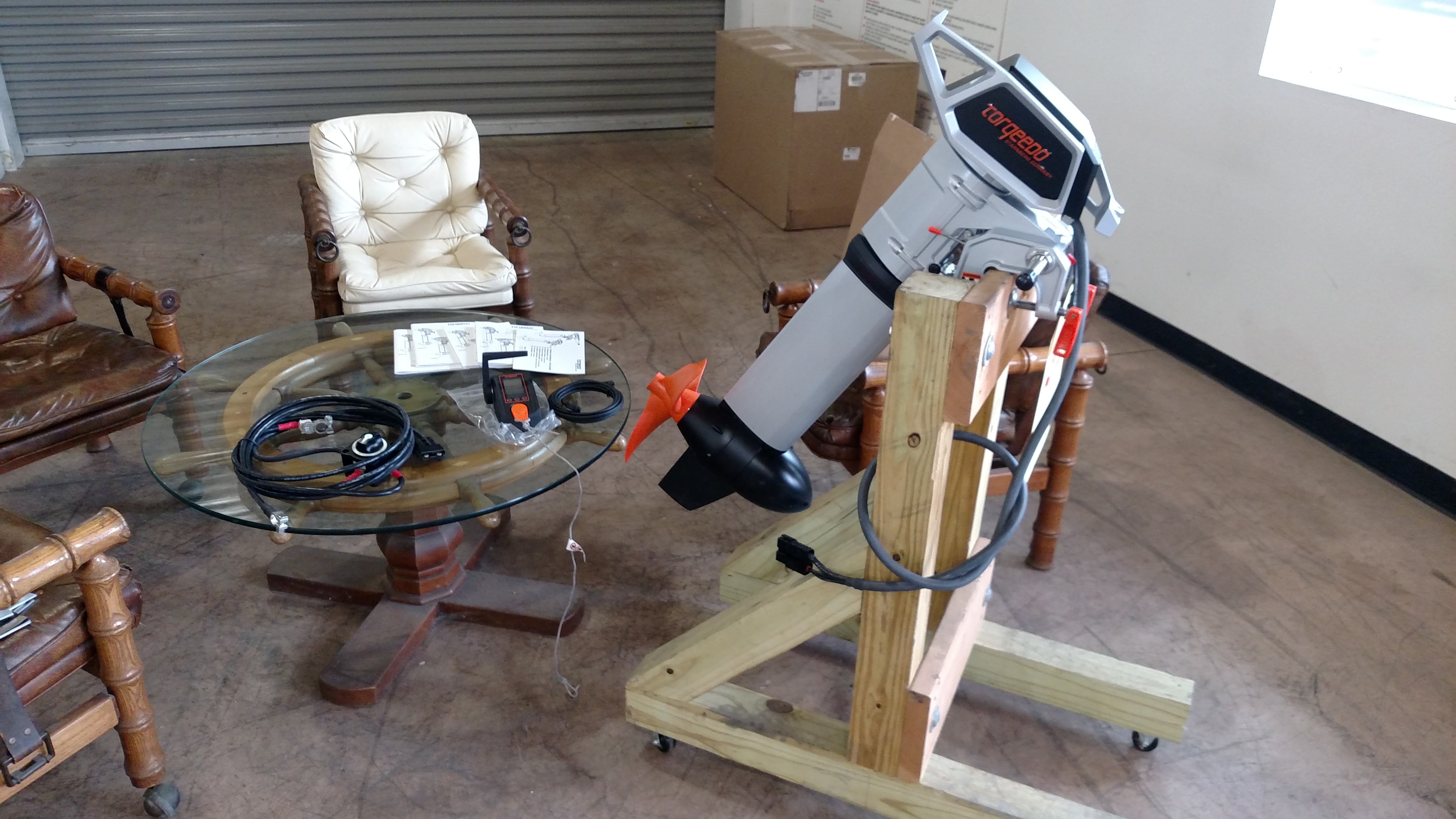 We bought this motor for a new pontoon. The motor was not long enough it cavitated. Replaced with a longer shaft. Motor would work great on a smaller boat or adjustable transom. Under 10 hours on motor. It comes with throttle controls and prop.