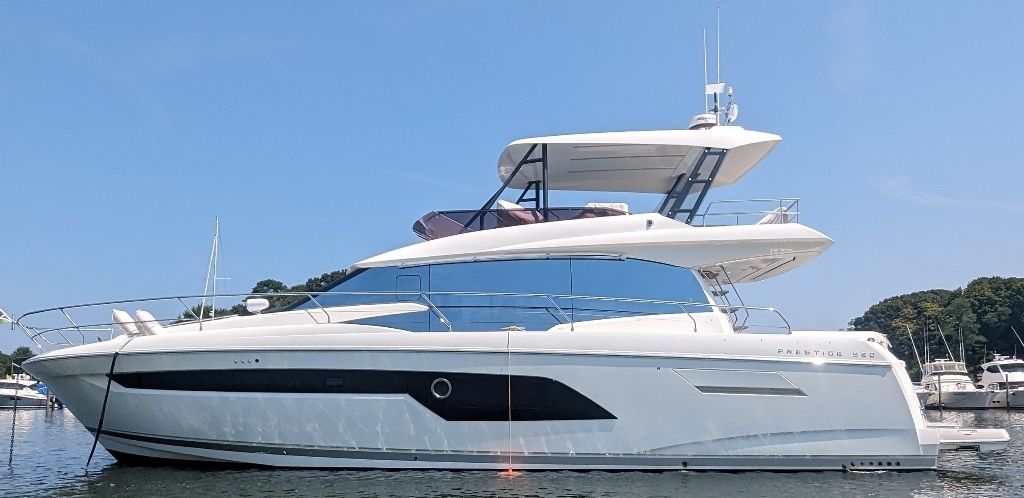 First sold/commissioned in 2020! Volvo warranties into July 2025! Excellent cruising speeds and fuel consumption unmatched by most yachts of its size. Flybridge with hard top! Sleeps 7 easily w/ three staterooms plus crew/captain cabin, three heads and showers, washer/dryer - your home away from home!