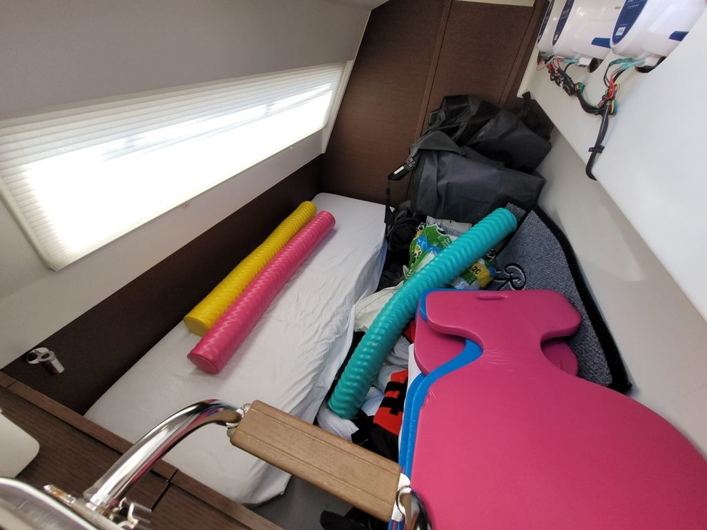 -Four beds fit 7 adults; three staterooms plus crew/captains quarters (crew/captain quarters has head, shower, HVAC)